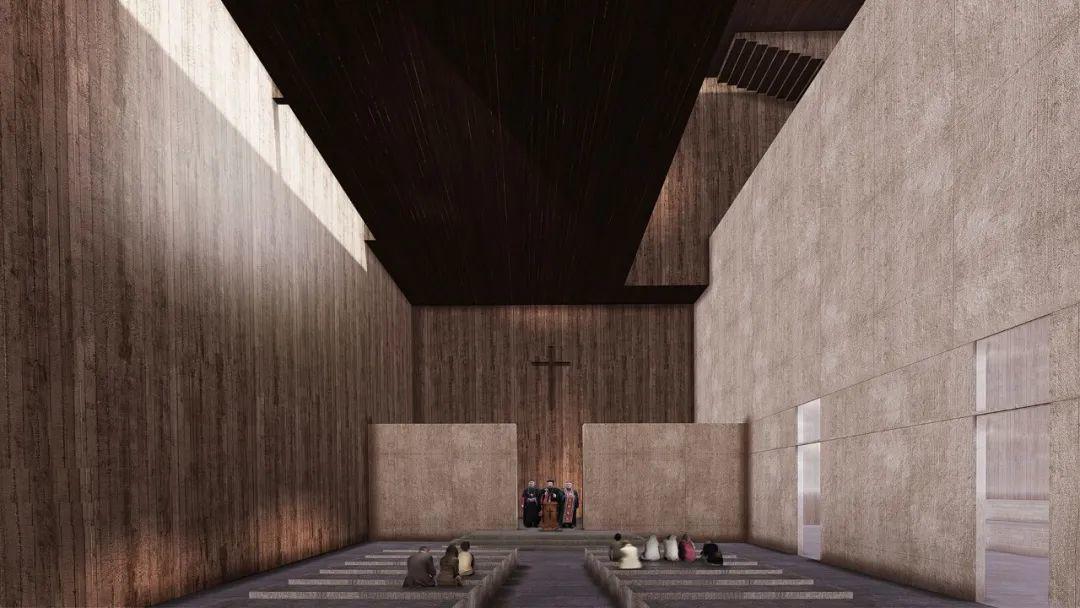 建築的力量,當它觸及一個人的靈魂而不屬於嚴格的文化象徵或歷史慣例時,被認為是超越這些問題的媒介。在這個宗教綜合體的設計中,空間試圖以永恆的方式延續精神空間的唯一本質。它讓不同的宗教在不同的空間呈現自己,同時使它們成為日常生活之外的共同經歷的一部分。不同的崇拜空間不是可以相互比較的單一對象,而是一個更大的整體的一部分,是一個永恆的空間。以土色的混凝土、水和庭院為基礎,對空間和空間進行模擬,將空間與古馬爾丁的詩意氛圍連接起來。