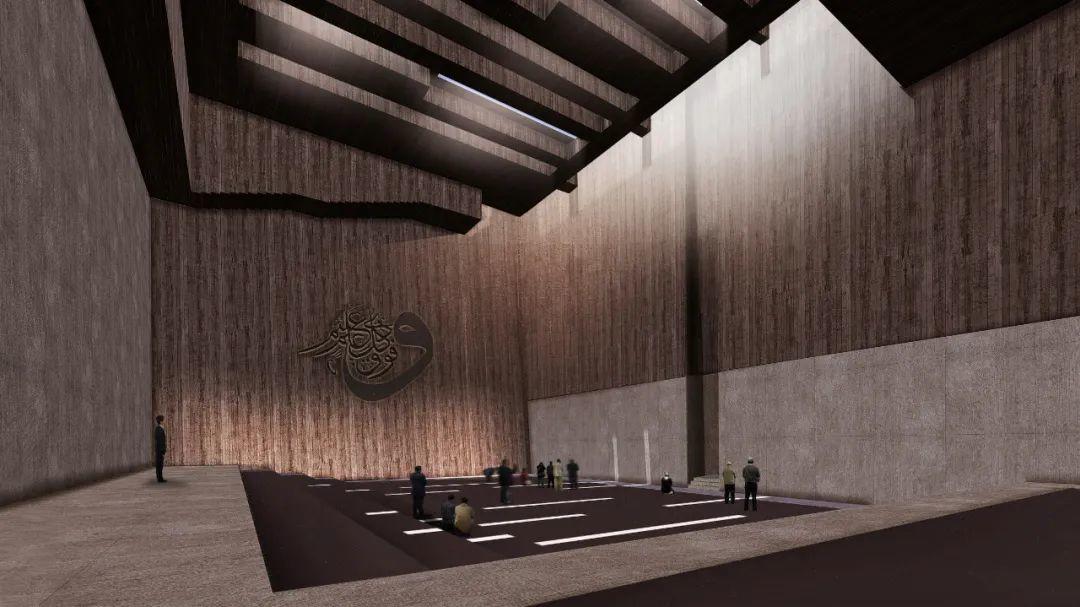 清真寺內部,一個簡單的洞穴般的空間,成為一個戲劇性和令人敬畏的地方祈禱和與上帝獨處的場所。齊布拉牆上的裂縫和裂縫增強了祈禱空間的方向性,讓陽光可以滲入祈禱大廳。