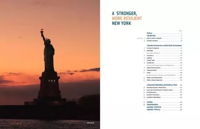 在高速城市化的進程中,氣候變化對城市發展的威脅尤為突出,由於氣候變化,全球變暖、海平面上升、強降水與洪澇災害及各類極端事件成為城市不得不面對的問題。面對氣候變化,提高城市韌性是增強城市氣候適應性的重要途徑。城市的氣候韌性,包含了抵抗擾動的抗力,也包括受到外界擾動的調節、適應與恢復的彈力。作為港口城市,紐約在遭受颶風、洪水等一系列災害後,紐約在適應氣候變化方面積極作為,城市政府、科學界和公眾同舟共濟制訂了適應性規劃,明確城市的脆弱性和風險領域,增強城市基礎設施建設 ,建立城市災害應對機制,對韌性措施進行多方位投入,以降低極端天氣的影響並增強預防措施。