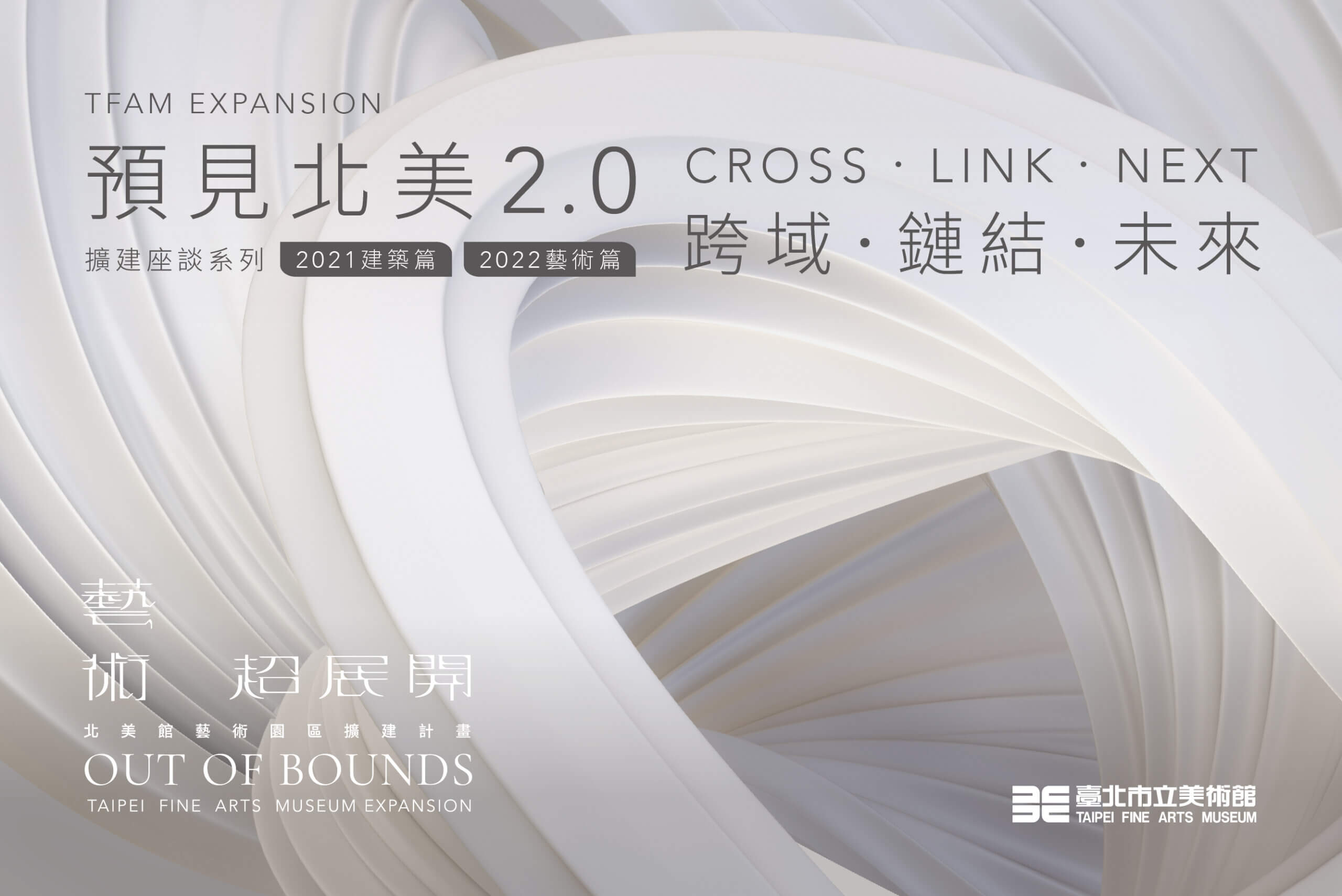 「典藏庫房新建」即將動土開工,「新館擴建」預計明年初啟動。作為臺灣第一座現代美術館,以及臺灣重要的地標建築之一的北美館,即將展開其轉型之路。值此歷史性的時刻,本館以「預見北美2.0」作為平台,2021年先推出「建築篇」,2022年接續推出「藝術篇」,分別邀集建築界與藝術界人士進行專業交流,為北美館未來的擴張與升級提出願景。