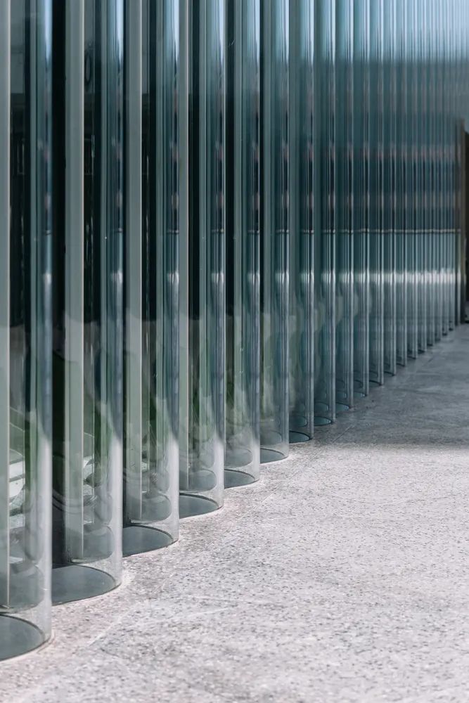美術館的立面共使用了475根玻璃管。每根玻璃管的尺寸均為直徑1公尺,高9公尺,且重達兩噸。從街道一側觀賞美術館的玻璃立面,會看玻璃折射產生的一種變形且抽象的外觀,使得美術館在高密度的都市環境中鶴立雞群。