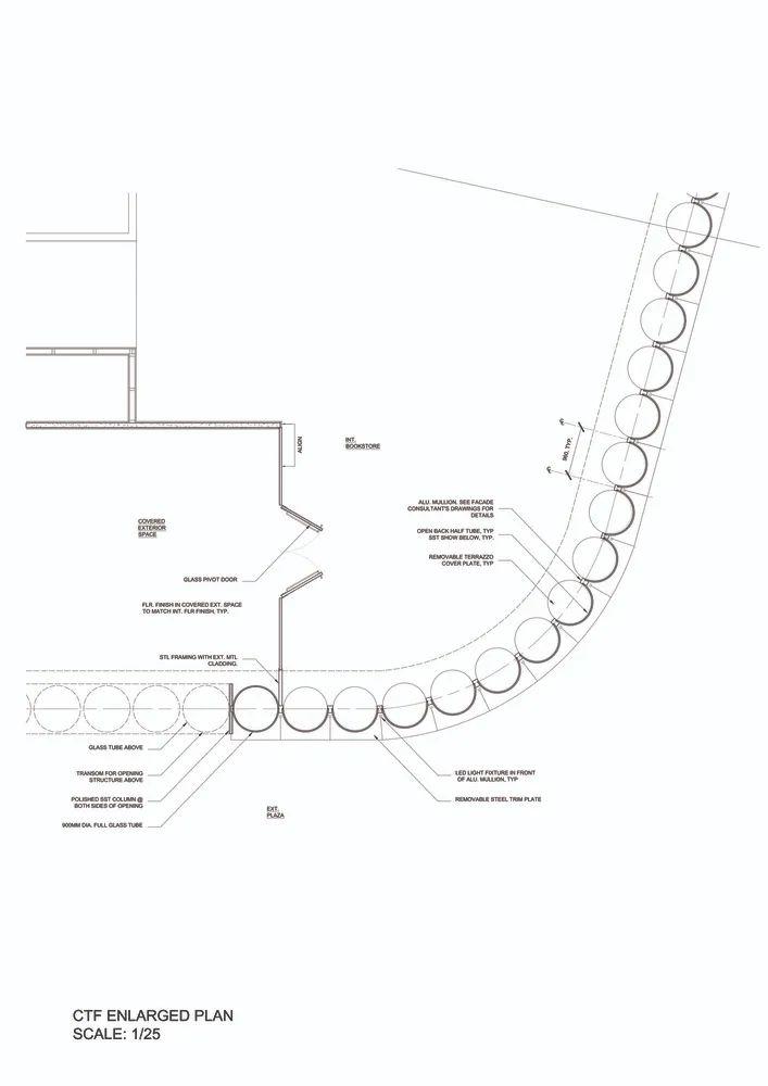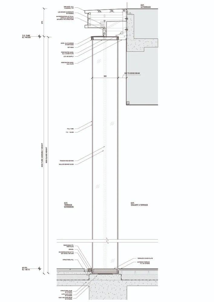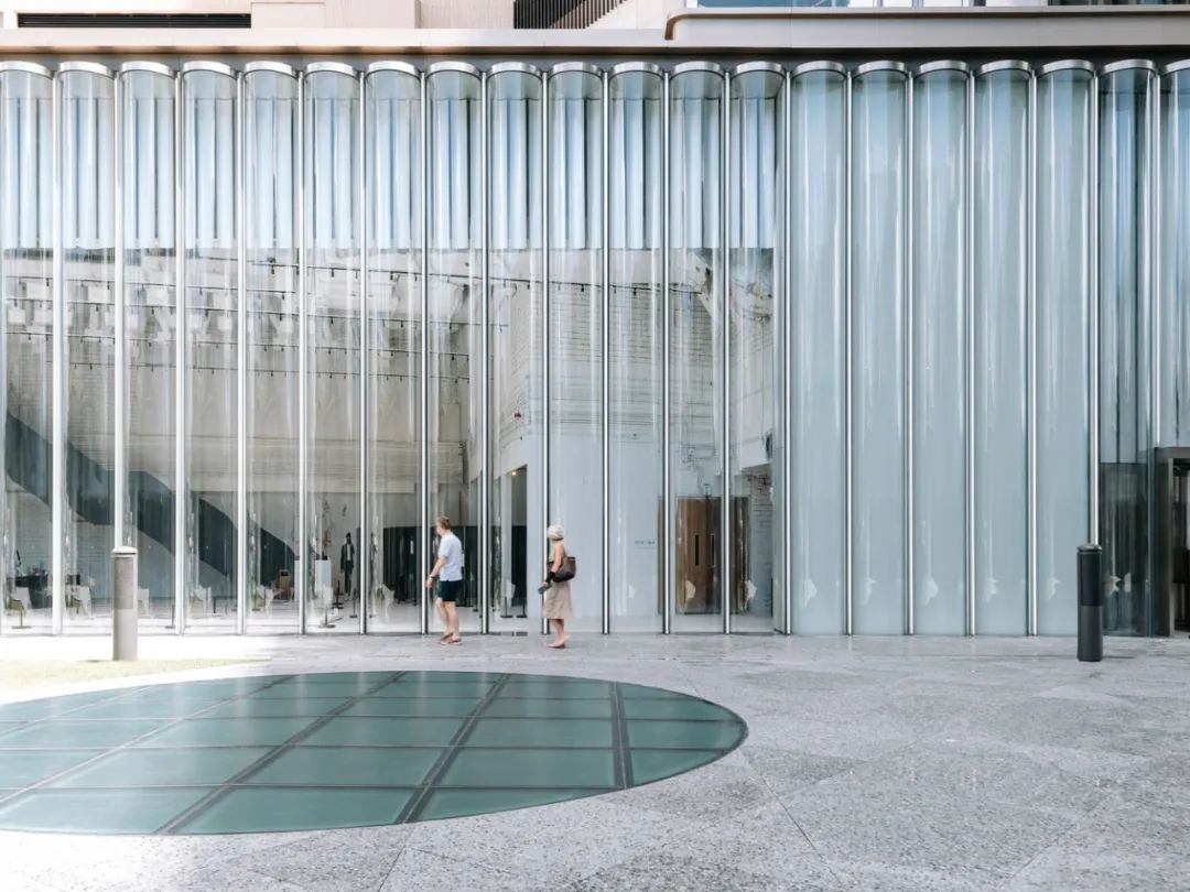 倘若靠近欣賞此一玻璃立面,訪客還可以從中發覺因反射或折射而產生的不同圖案。同時,玻璃立面所產生的通透感,還會給訪客在喧鬧嘈雜的高密度都市環境中以喘息的空間。