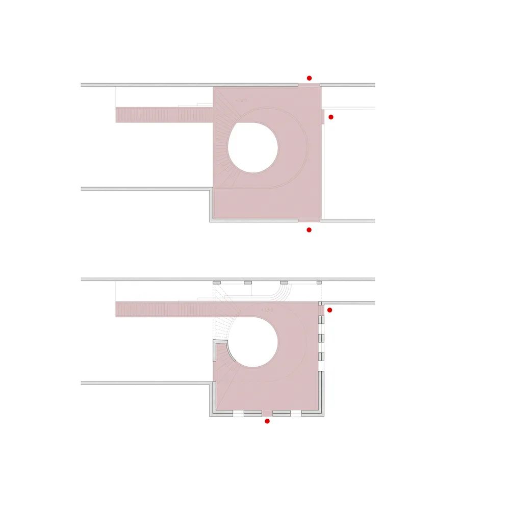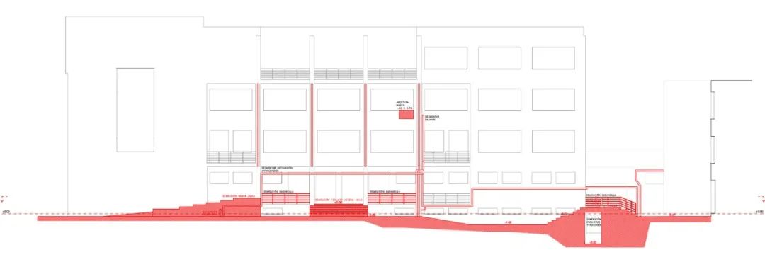 現有的建築樓層被新築的樓板取代,以此在保有原先入口位置的情況下,解決了可達性的問題。建築群中的一個庭院中有著一個新的混凝土結構,它使用了簡單的設計方式,但卻有著複雜的工藝形體,它就好像一個拔地而起、不斷向上生長的藤蔓一樣,連接著不同的建築。此一結構中不同的平台和樓梯有著不同的寬度,因此為學生和老師們提供了可以將教室拓展到室外的空間。