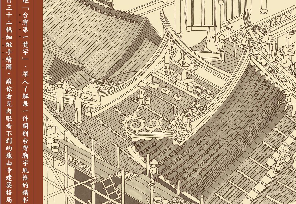 《圖說艋舺龍山寺》作者徐逸鴻研究艋舺龍山寺多年,以深入淺出的方式,結合歷史資料考證及相關匠師採訪,將龍山寺的製造過程、無法用肉眼見到的工法細節與內部 結構,如地基、屋簷、裝飾、雕刻等,一一詳加剖析。一百三十二幅細緻手繪圖,讓你看見平常看不到的龍山寺建築格局及細部之美。