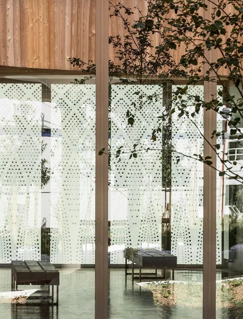 所選材料符合建築的所有功能、經濟和環境要求,藉由不同材料的組合避免單調的建築語彙出現在此,此外,當居住在此的學生們或開或關每片窗戶時,由外皮層連貫至建築體的開窗則為建築表情創造了絕佳的節奏感。