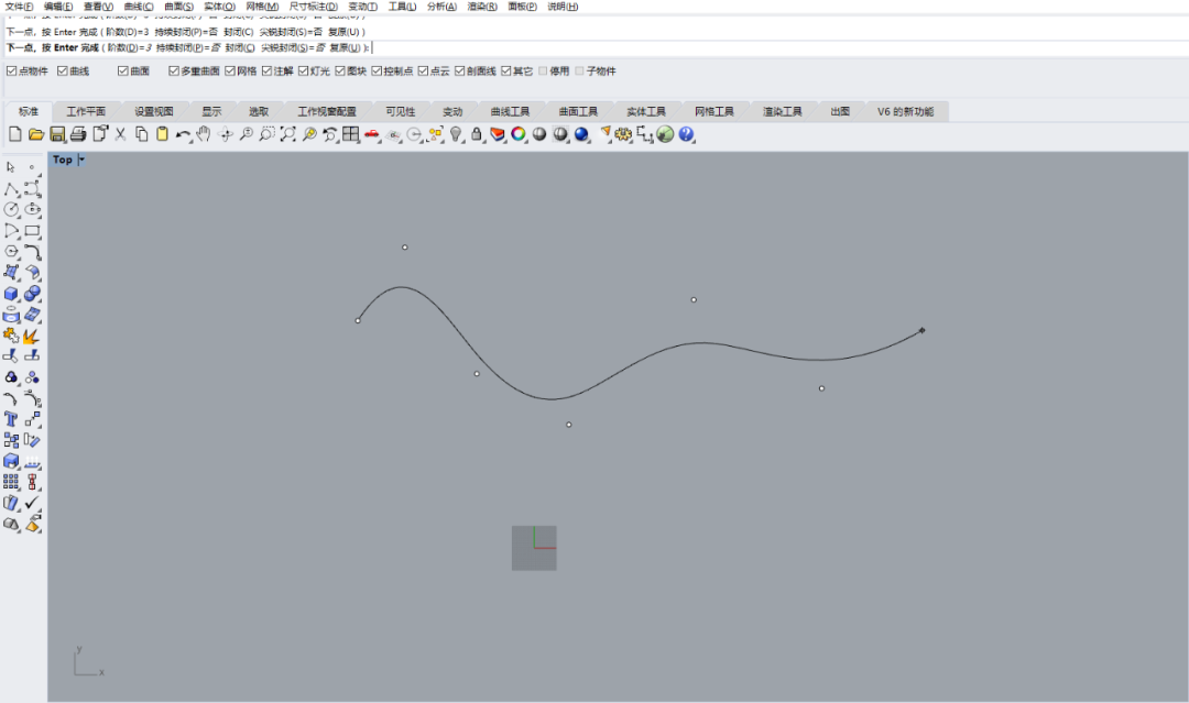 點擊該指令:指定曲線的起點—指定下幾個點—按Enter完成曲線,選中曲線後,移動控制點,即可調整曲線形狀。
