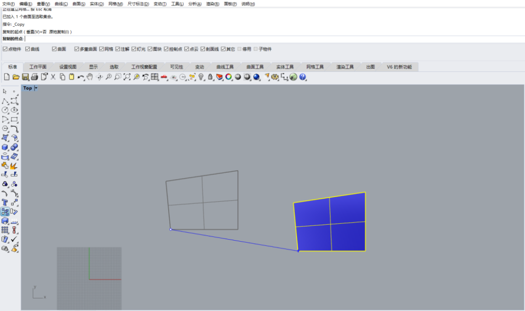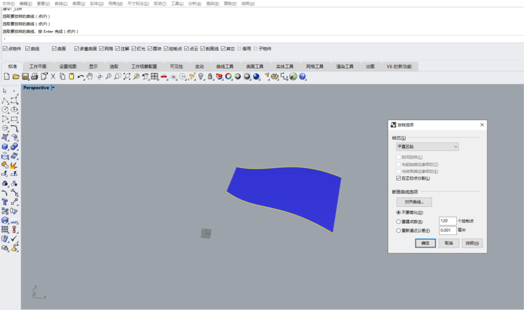 點擊該指令:選取曲線或曲面—按Enter結束指令