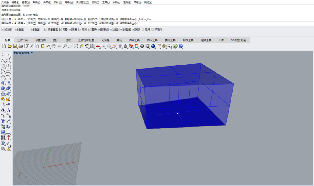 點擊該指令:選取一根曲線—設定距離——按Enter完成指令(再點擊指令的過程中,如需改變擠出方向或是否實體,需提前在指令中點擊)