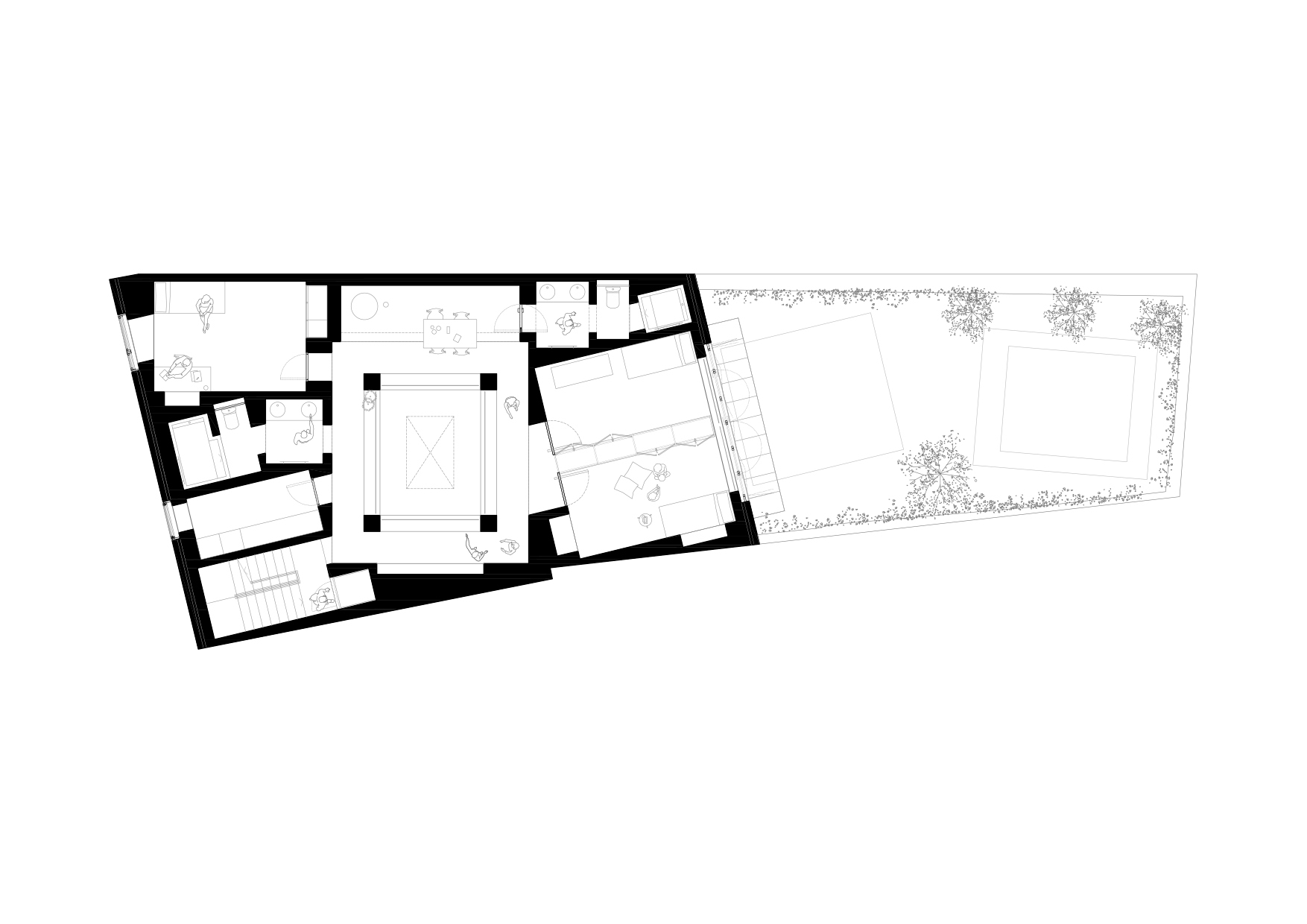 為了克服基地深處採光和通風的限制,HARQUITECTES 團隊從傳統住宅類型中汲取靈感,將中庭(或天井)的概念融入設計之中,讓住宅的中心成為最具代表性的空間,並為周圍的空間帶來充足的光線和空氣流動。