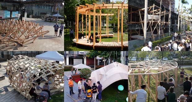 作為「2020年實構築 構造詩」展覽的共同進行計畫,2020年2月23日到2月27日這幾天,來自幾個學校的學生在臺中文化創意產業園區共同搭建形式各異的構造物,以下是學生們的作品。