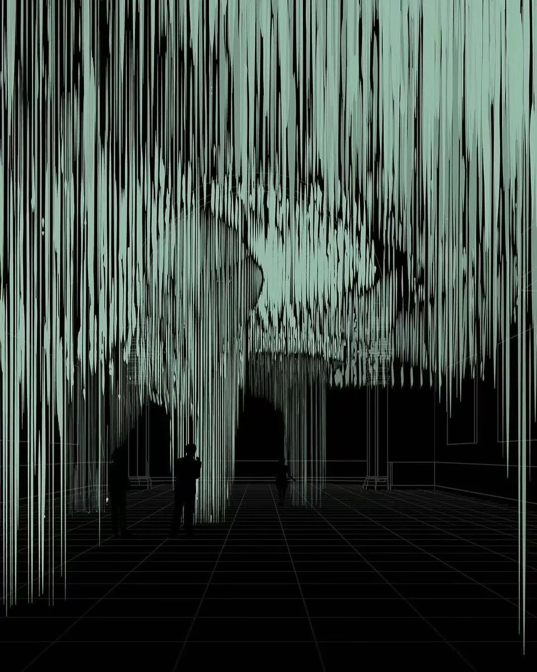 與石頭為建材的場館和希臘神話人物作為對比,參觀者戴上眼罩,在真實的場館內穿梭於虛擬的「美杜莎」之間。設計師受到北極光和水下發光生物的啟發,「美杜莎」的結構將根據整個觀眾群而產生移動和變化,將「自然」和古典建築做連接,讓觀眾產生一種「很美,很吸引人,但同時也有危險感覺」的「美杜莎」之境中。