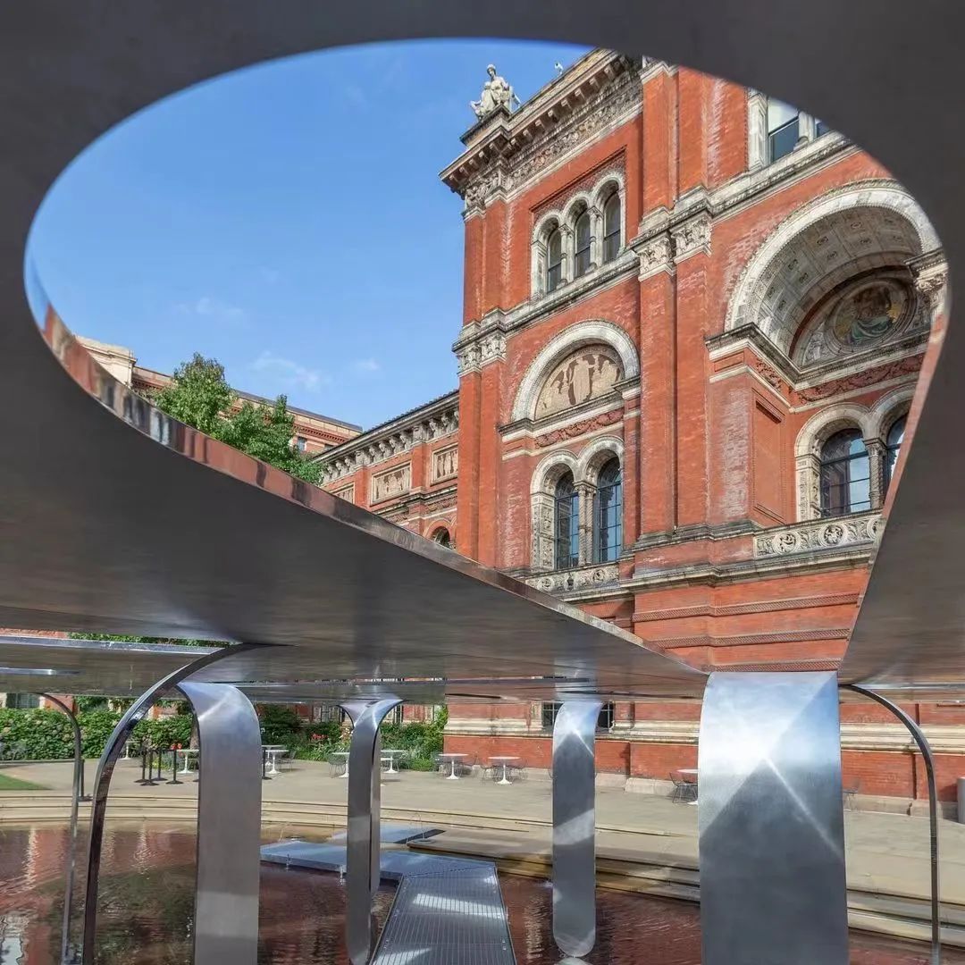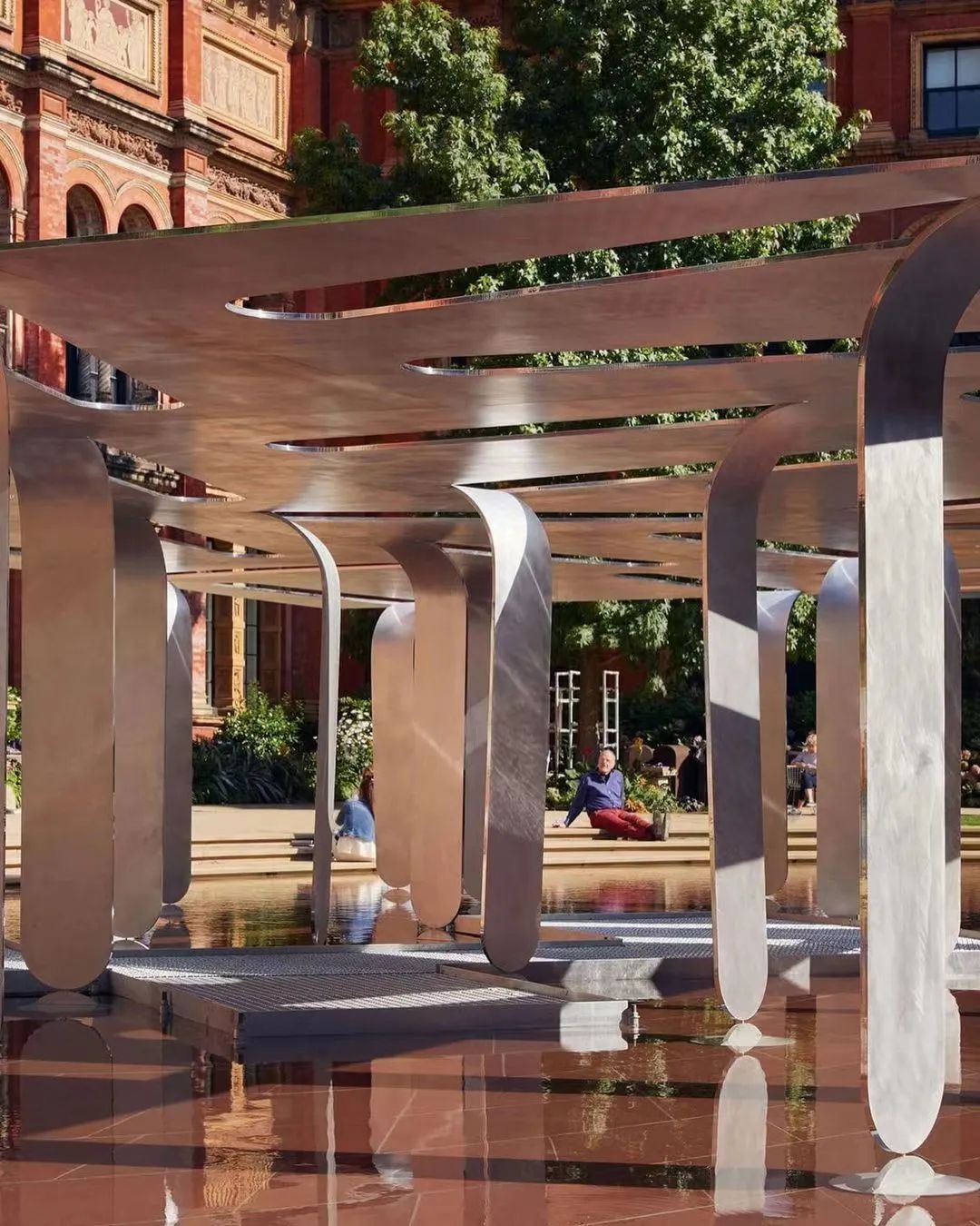 受 V&A 博物館委託,總部位於倫敦的跨領域設計工作室 Nebbia Works 在博物館內的約翰馬德斯基花園(John Madejski)中設計了一個沉浸式的低碳鋁展示空間。