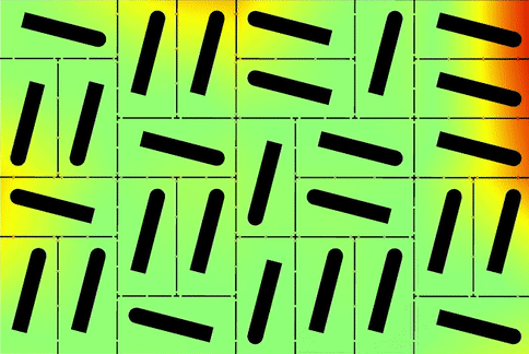 而右手邊的「反射牆」,銀色的陶瓷磚被安排在了兩個相反的方向,當人們在作品周圍移動時,它能吸收作品周圍空間的色調,窗外的藍色調被作品部分陶瓷「吸收」,影響了作品的顏色。