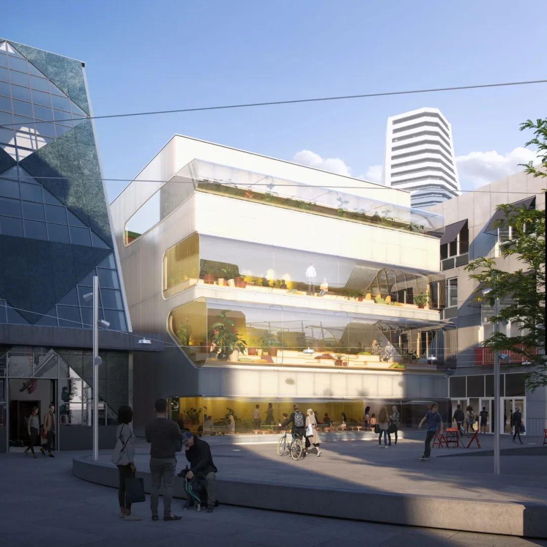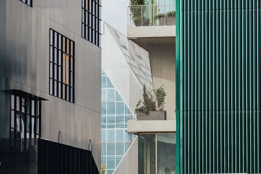 建築師事務所 Architecture 00 設計的兩座建築都邀請承租者利用其內部和外部空間發揮創意。屋頂是一個多機能運動場,但也可以是一個彈出式酒吧和活動空間。露台可以是放鬆的地方,也可以成為戶外工作區。