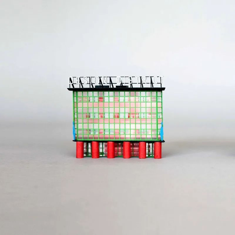 A4 和 B4 樓看起來像一對微型發光的宮殿。兩者都有厚重的紅色磚石底座和帶有網格圖案的綠色玻璃帷幕牆。A4 樓頂的 DESIGN DISTRICT 標誌宣佈著參觀者抵達設計區。該建築由總部位於倫敦的事務所 David Kohn Architects 設計,建築受古典啟發,但也參考了其他時期的建築風格, 比如有威尼斯行會房屋裝飾華麗的宮殿。