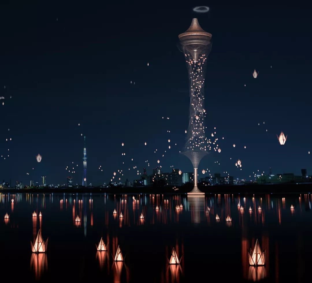 隨著城市的不斷擴張,無論是水稻種植還是傳統神社都在繁榮的城市景象中漸漸褪色。神社通常都被遮擋在現代摩天樓的陰影之下。然而根據一些古代手稿記載,兩百多年前的出雲神社就曾達到96米的高度,這也就是本次神社摩天樓設計的歷史依據。