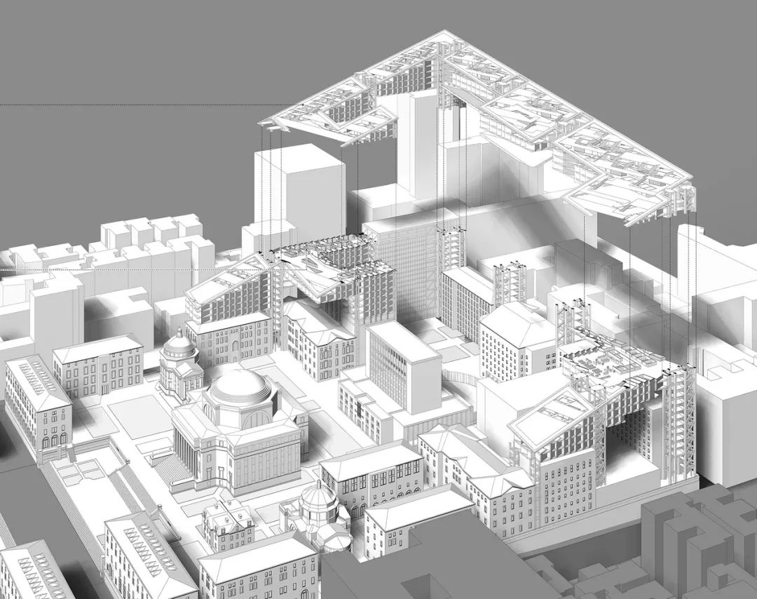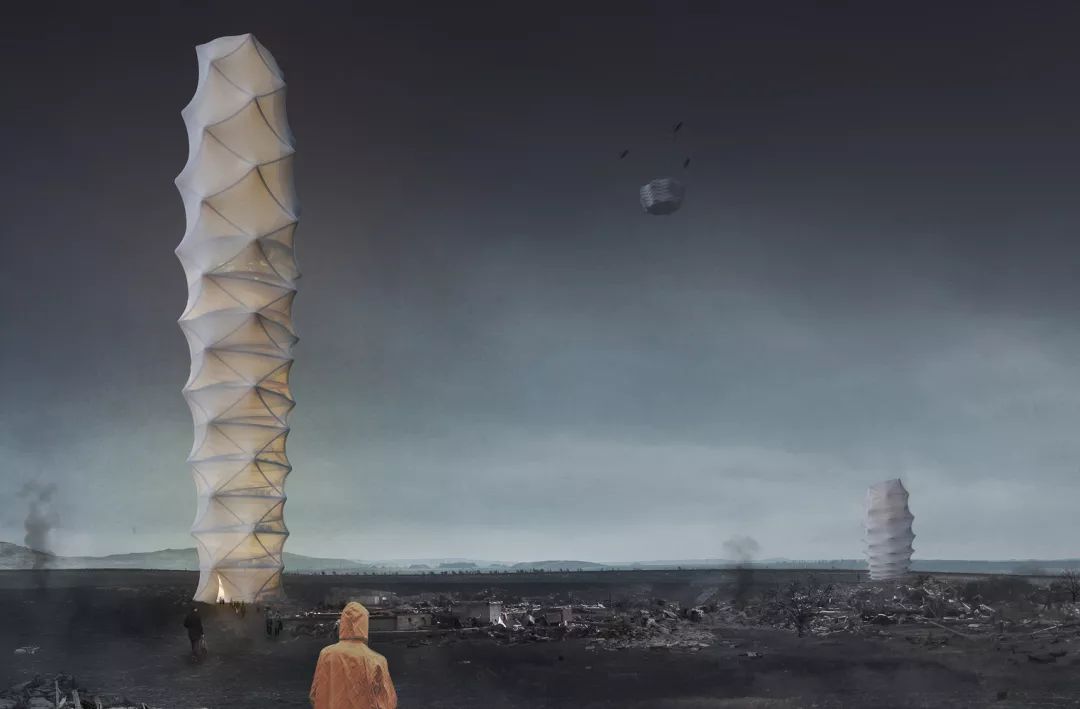 於是本次「疊合於空中的避難所」方案就試圖通過構建一個垂直建築來解決這些問題,它可以提供寬敞而緊湊的避難空間,方便運輸到任何地方,可以在最短的時間內和最少的人力需求下進行部署。該建築可以作為一個施展各項救濟行動的多功能救災樞紐。