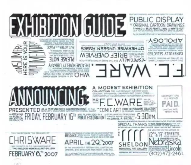 Chris Ware 是一個美國漫畫家,他是《紐約客》常駐插畫師,有很多獲獎作品。著名作品有《吉米‧科瑞根:世界上最聰明的小子》《Building Stories》《Acme Novelty Library》,其作品是現代漫畫的形式先鋒,也是當代設計行業的風格先鋒。他的自畫像也是形式主義和精準線條的典型作品。