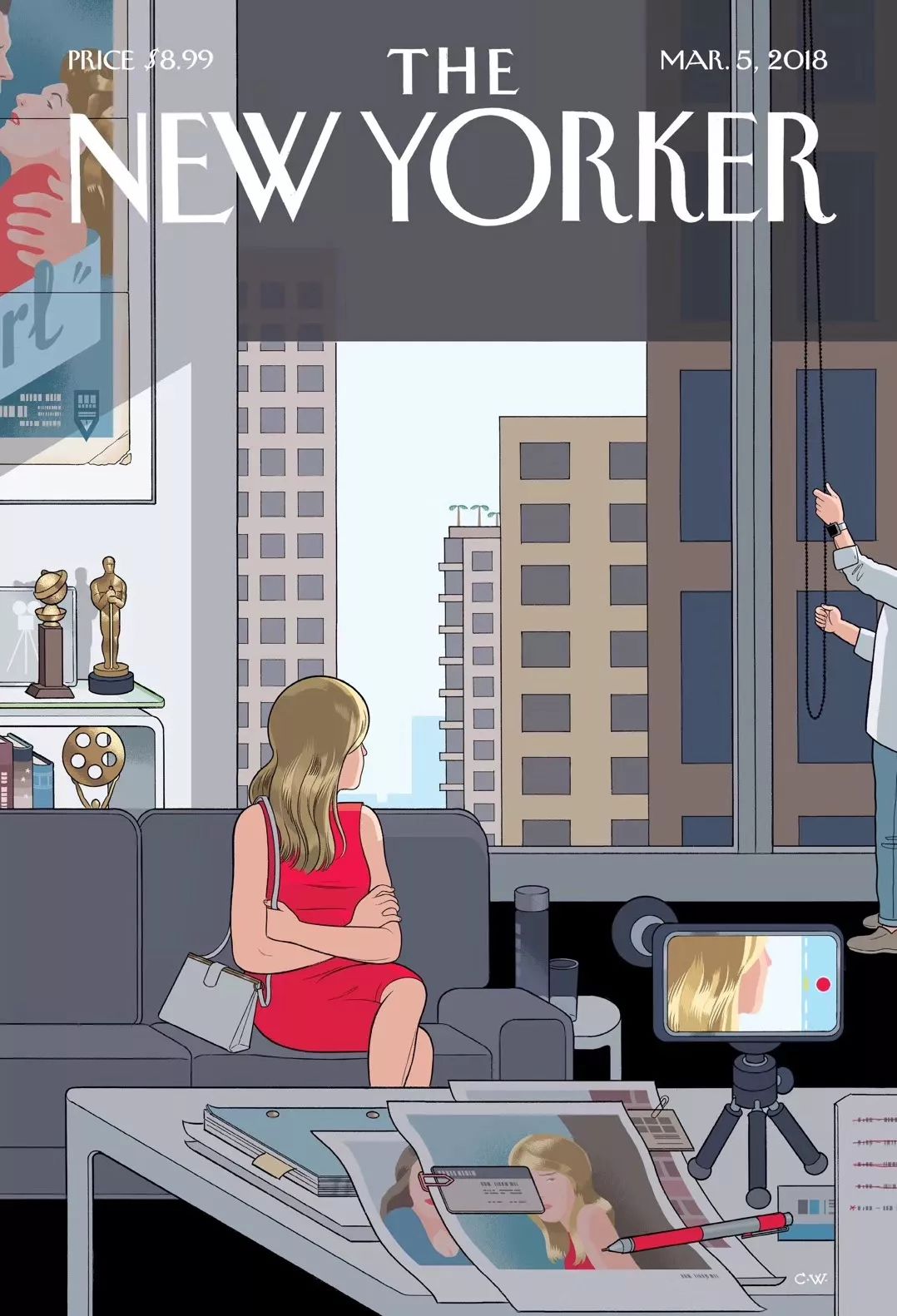 這是2018年3月5日的封面,恰逢第90屆奧斯卡金像獎頒獎期間,經歷了好萊塢性騷擾醜聞的奧斯卡一片黑暗,chris ware 因此創作了這幅作品。