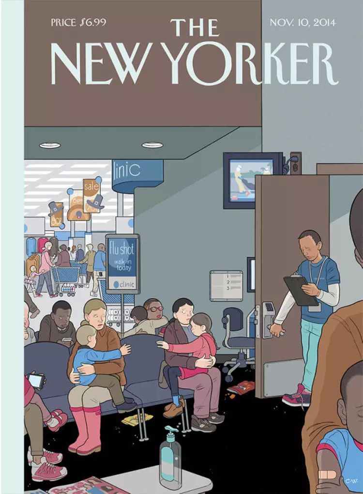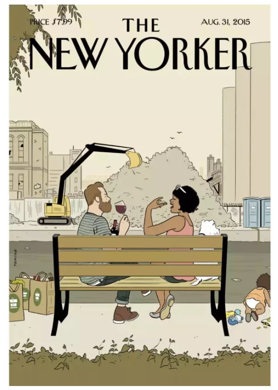 他的作品很有深度,社交孤獨情感缺失,以及跨種族等都是他故事裡經常表達的角度,在後面介紹的紐約客的封面故事,也能感受到他對生活觀察的深入和情感深處的思考。