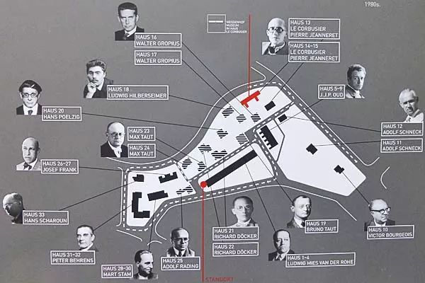 斯圖加特國際住宅展建築群(Weissenhof Estate)項目地圖,圖片來源:bauhaus100