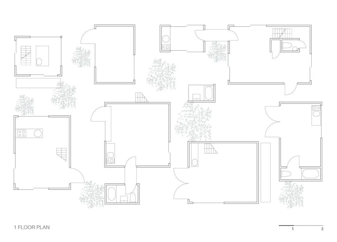 森山邸分離式的平面不僅僅是一場異想天開的建築腦洞,它更是一次對家庭內人際空間關係的探索,或者說是一場新型家庭結構的社會實驗,一處獨居個體共享空間的建築社區原型。