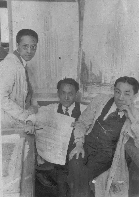 中國留學生在賓夕法尼亞大學,從左至右:童寯,過元熙,陳植
