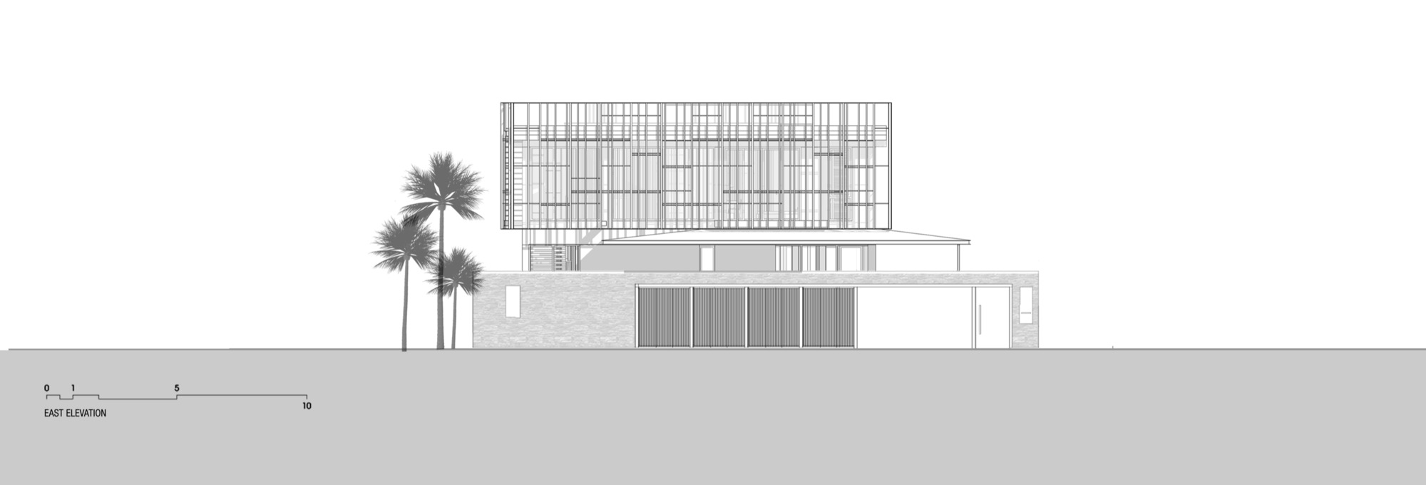 建築師並非單純模仿形式,而是精準回應當地易淹水地理特徵,建築量體採用輕量化的鋼結構,與周遭厚重的混凝土別墅形成強烈對比,彷彿一艘停泊在綠色海洋上的方舟。從外觀看去,金屬網與垂直線條構成的立面,在陽光下呈現出冷冽而精確的工業質感,讓人看出屋主對於極簡當代生活方式的極致追求,以及在繁雜都市中尋求一方淨土的渴望。