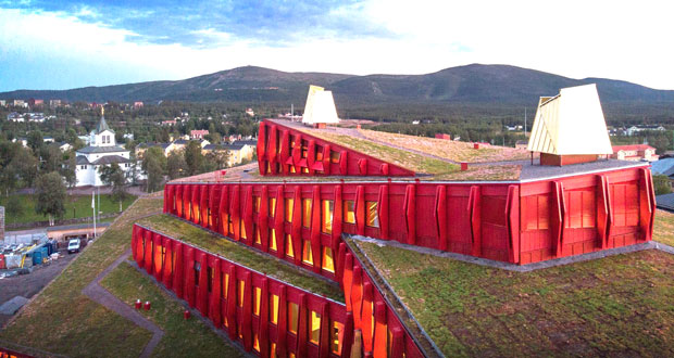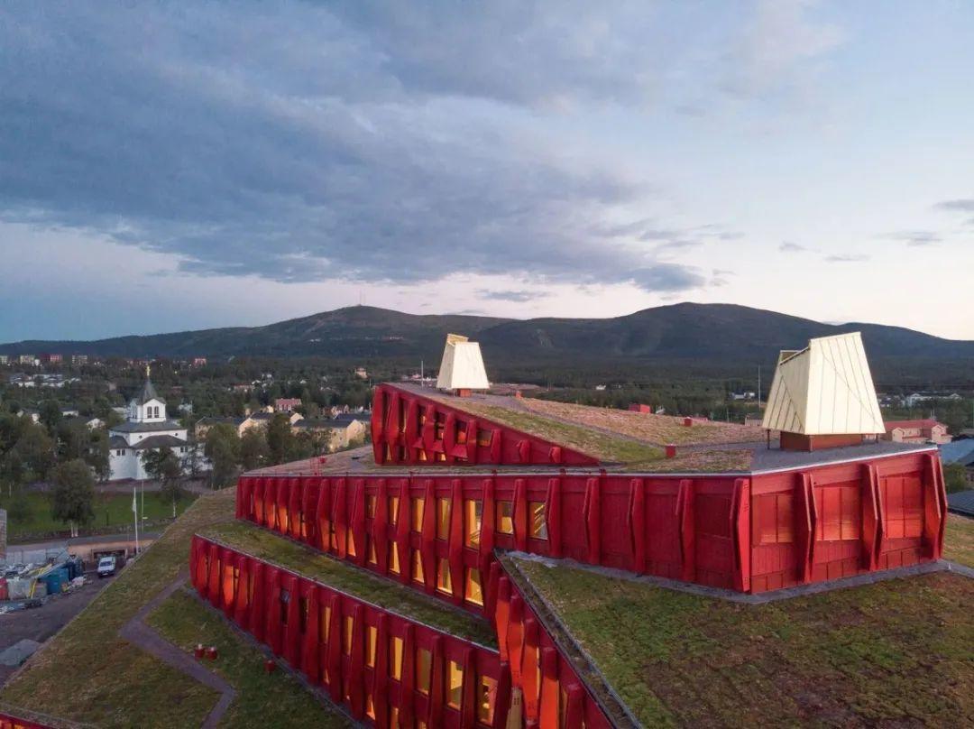 薩米藝術家分別是畫家 Anders Sunna 、玻璃藝術家 Monica Edmondsson 以及紡織藝術家 Britta Marakatt Labba 。其中的一件作品是融入外立面、延伸超過21公尺、印有環形薩米圖案的大型混凝土澆築物,另一件是入口大廳的採光井。重要的是,這些藝術作品最終與建築完美交融,而非淪為建築的附屬品。