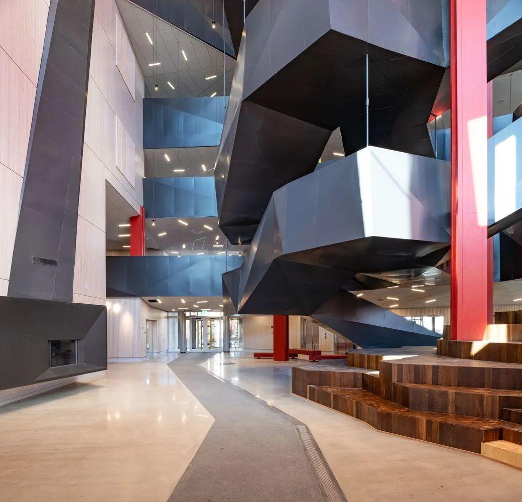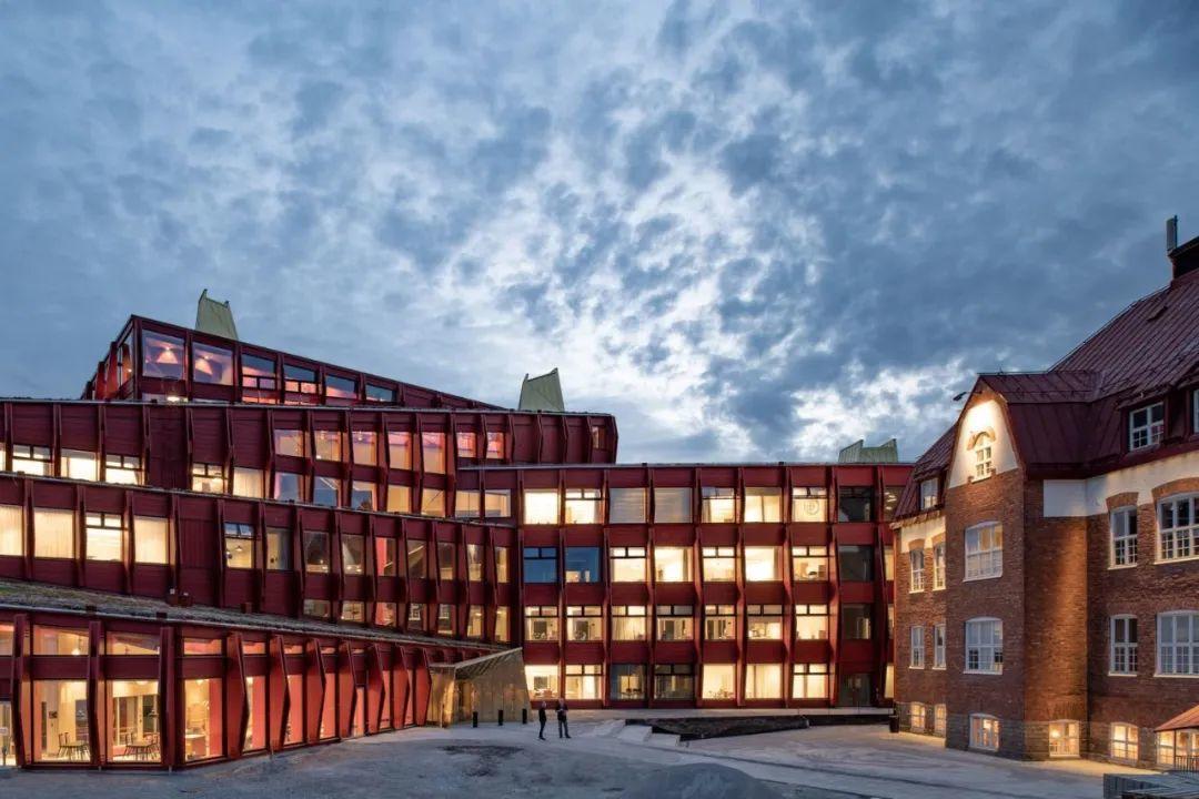由Liljewall 建築師事務所設計的「Kunskapshuset」,以「知識之家」扮演著歡迎的角色,在此願景的實現過程發揮了重要作用,六層樓高的學校建築形成在地地標,建築設計以礦井和自然地形條件為概念,該地區的高中及成人學習中心都設立於此,並且傳承當地的記憶和文化。
