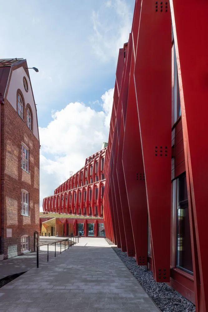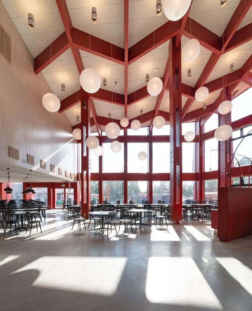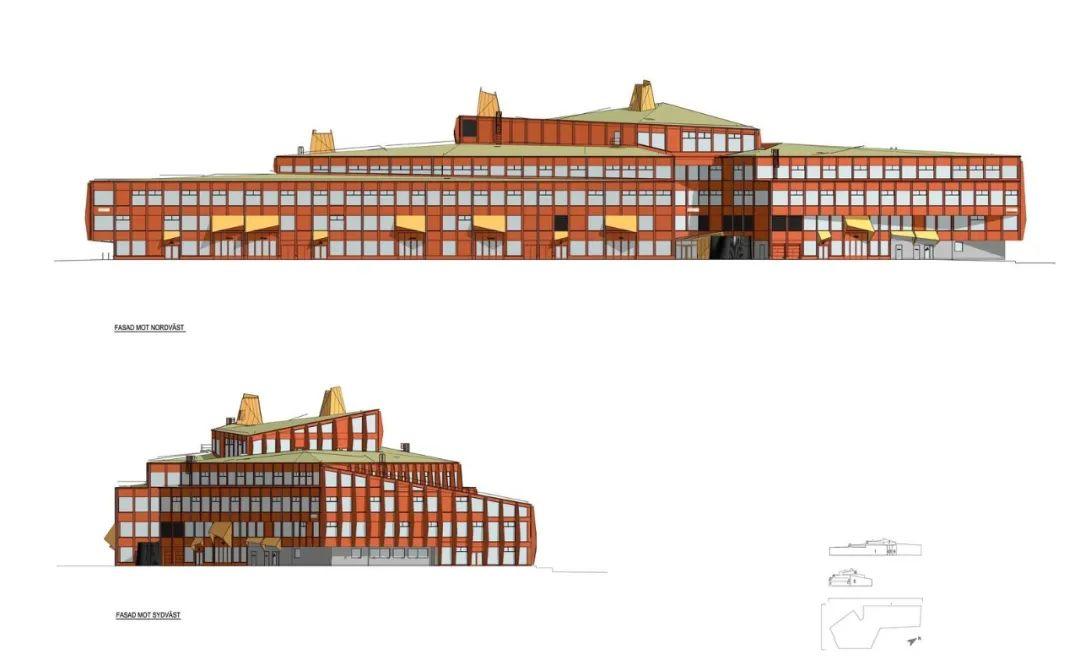 設計重點在如何創造出一個既彈性又引人入勝的教育環境,以應對未來的變化和發展需求,「Kunskapshuset知識之家」獨特外形,藉由其內部和外部醒目的元素展現出來,其非對稱的外型,讓建築的大量體感覺不會那麼沉重,以紅色且動態的立面,創造歷久不衰、震撼人心的特色,建築立面凸顯了當地的設計傳統,為小鎮注入了一種工匠精神。