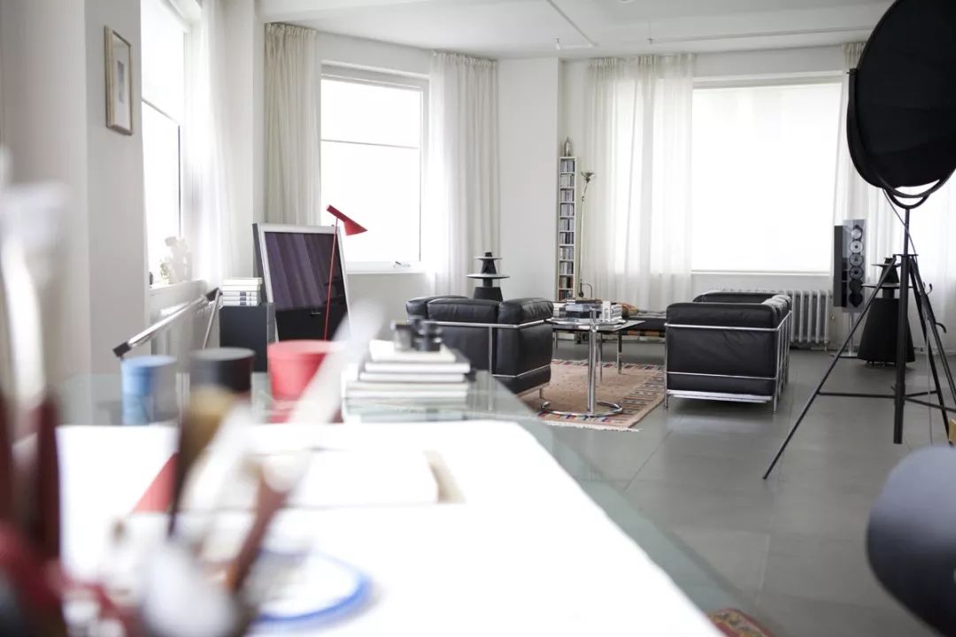 Daniel Libeskind是一位波蘭、猶太裔美國建築師、設計師,設計過柏林猶太博物館、帝國戰爭博物館北館、當代猶太博物館和世界貿易中心一號大樓等知名建築,從他的設計作品來看,就可以知道 Libeskind 在世界各地都工作過,最終在紐約定居下來。而他的住宅則是這位建築師遠離曼哈頓喧囂生活的「避難所」。相對稀疏,明亮的公寓裡只有幾把柯布西耶(Le Corbusier)設計的椅子、一張咖啡桌、一張辦公桌,沒有多少其他東西,非常清心寡慾。
