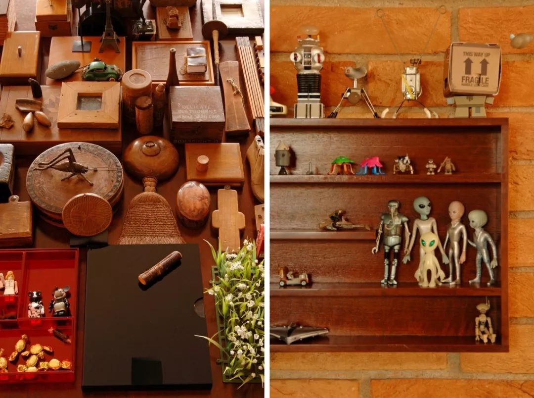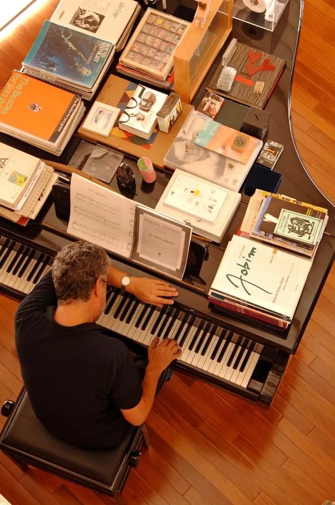 巴西建築師兼MK27工作室的負責人Marcio Kogan住在他自己設計的一棟住宅樓的12層。房子高聳入雲,反映了巴西明亮、自由的空間。科根的公寓充滿了獨具一格的設計。房間中央有一架大鋼琴,部分用作咖啡桌,架子和牆壁上擺滿了擺著藝術造型的紀念品、玩具、小飾品等,非常有趣。