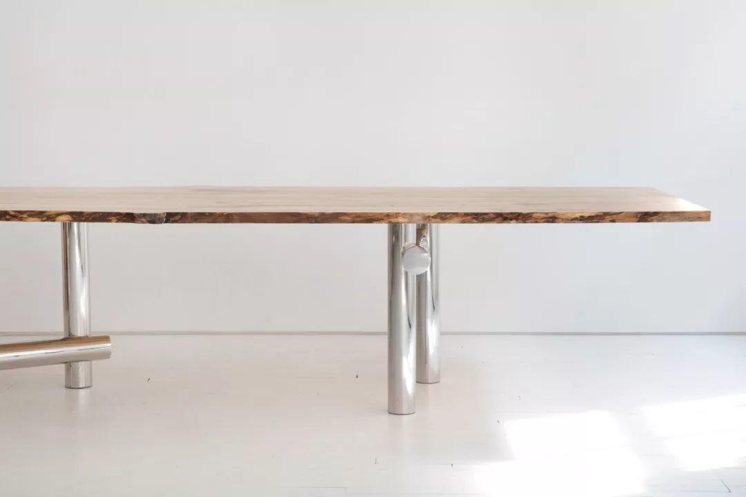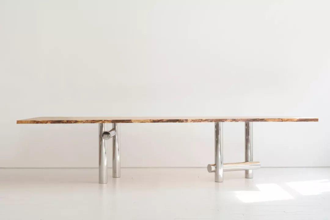 木質桌面與拋光不鏽鋼底座的結合,現代感十足,家中空間較大的話,選擇這款長桌會是不錯的選擇。