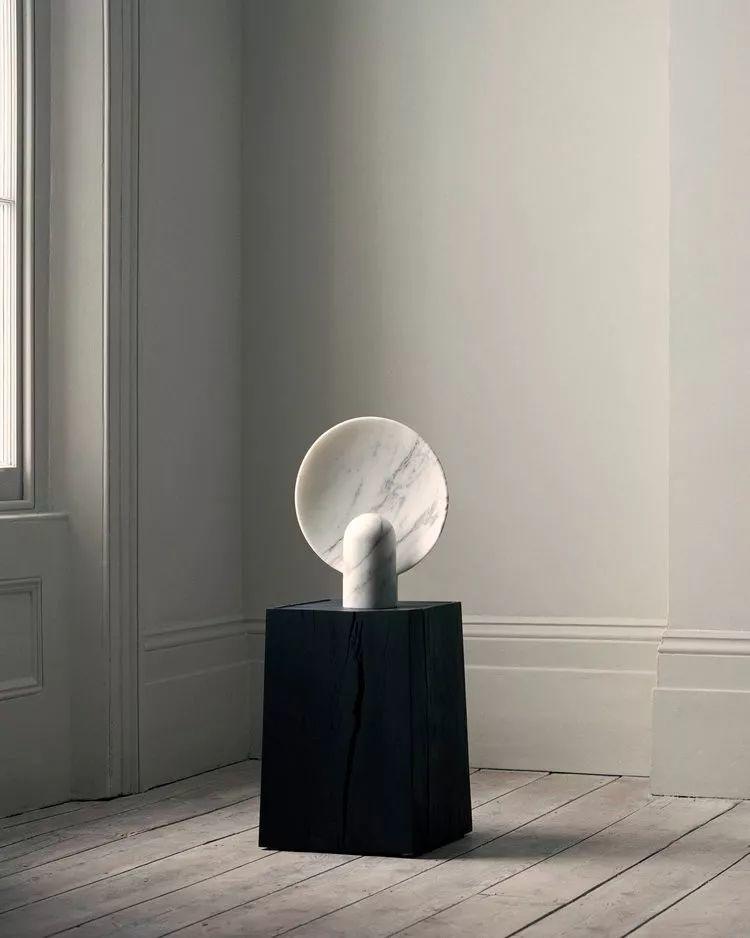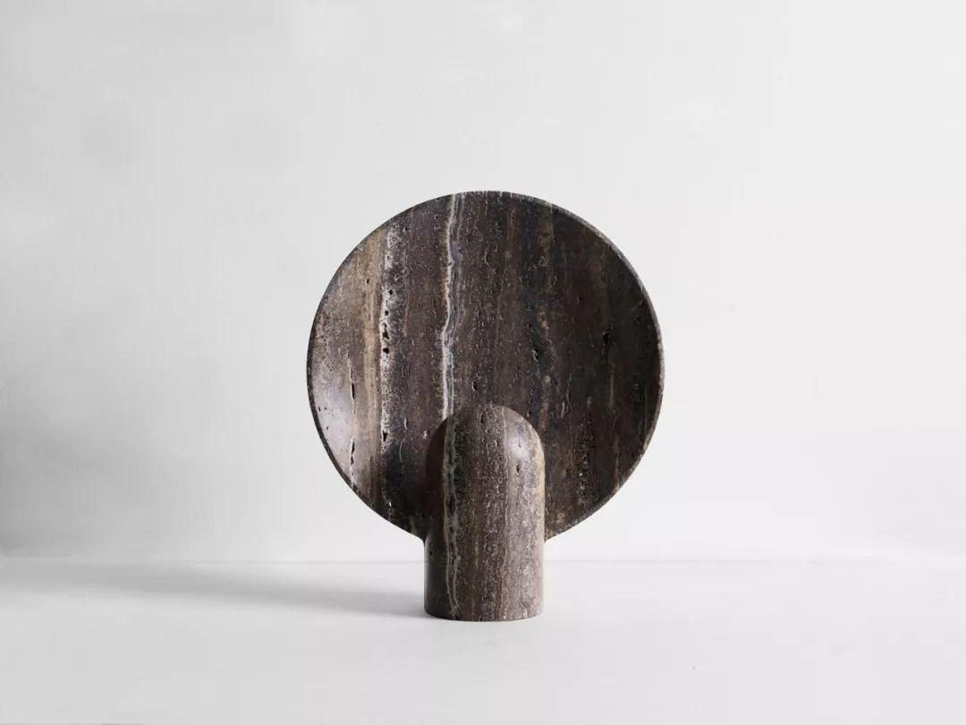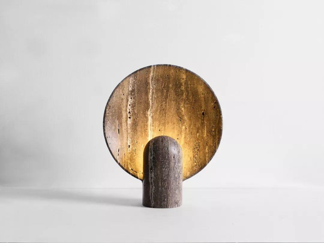 用石材製作的檯燈,不夠完美的表面反而成為另一種獨特的美,燈光從中反射出來,比起直射光更加柔和。