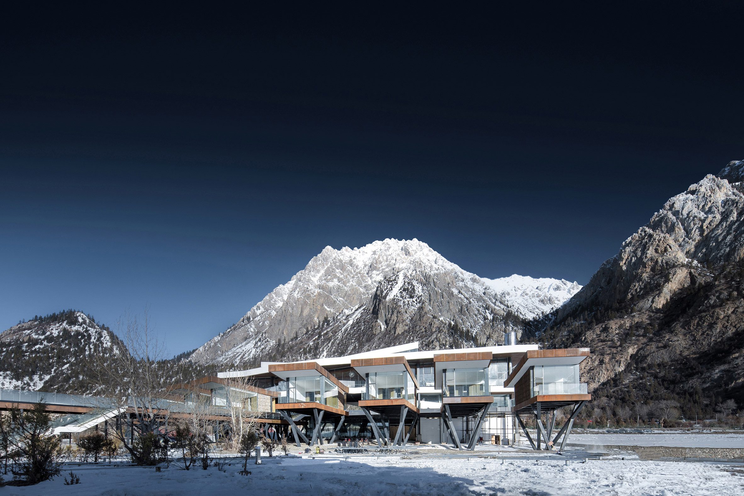 此外,紅色在藏族文化具有神聖與吉祥的意涵,耐候鋼的運用因此產生了雙重隱喻:既是對嚴酷自然環境的物理回應,也是對在地人文精神的深情致敬。建築彷彿是從岩壁中生長出來的有機體,以一種謙卑而堅毅的姿態,棲息在這片神聖的土地上。