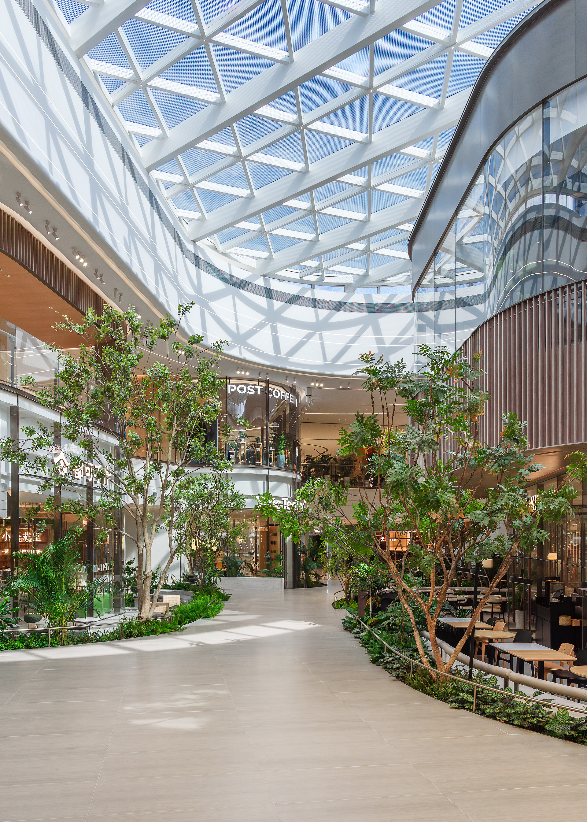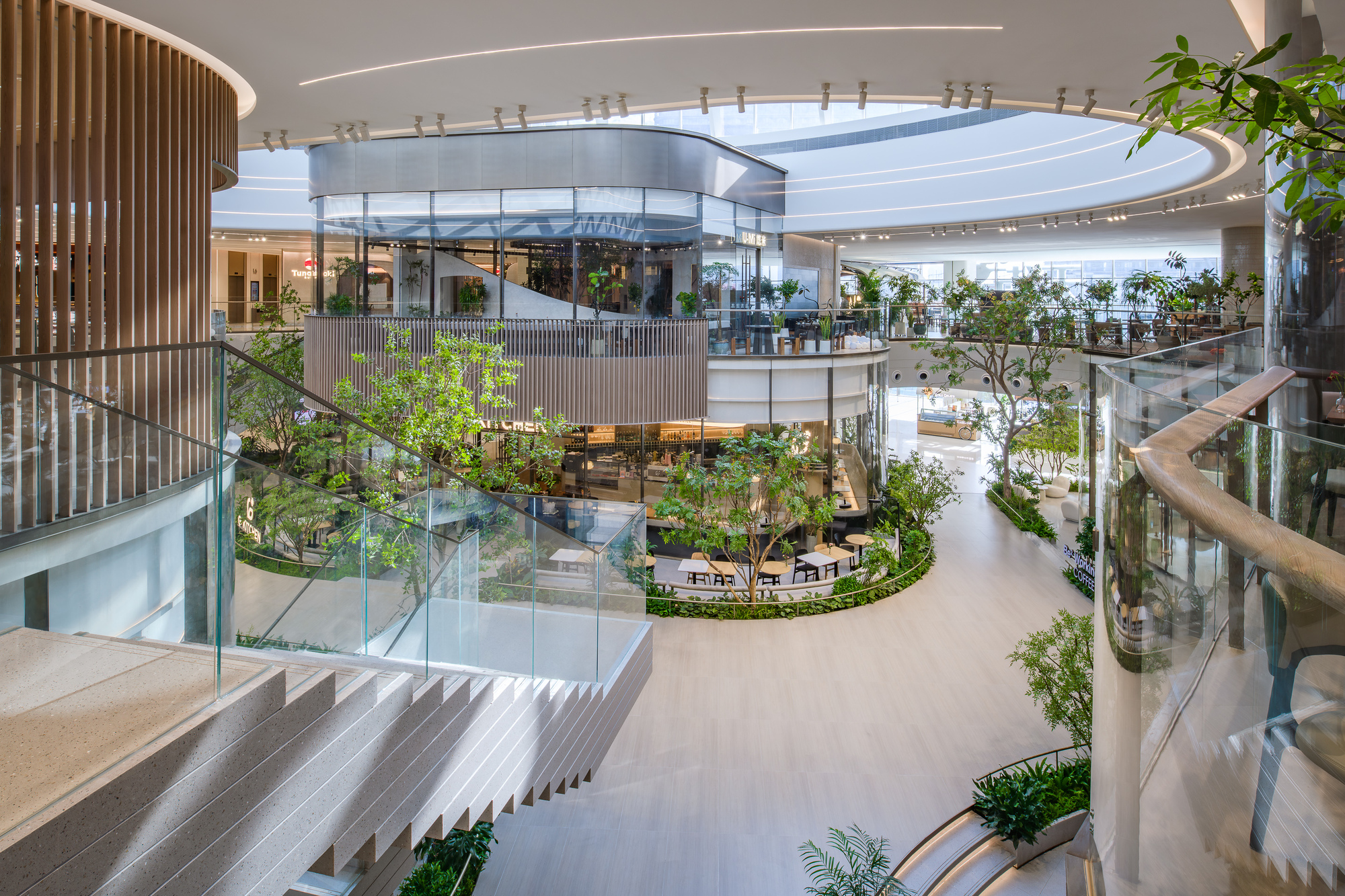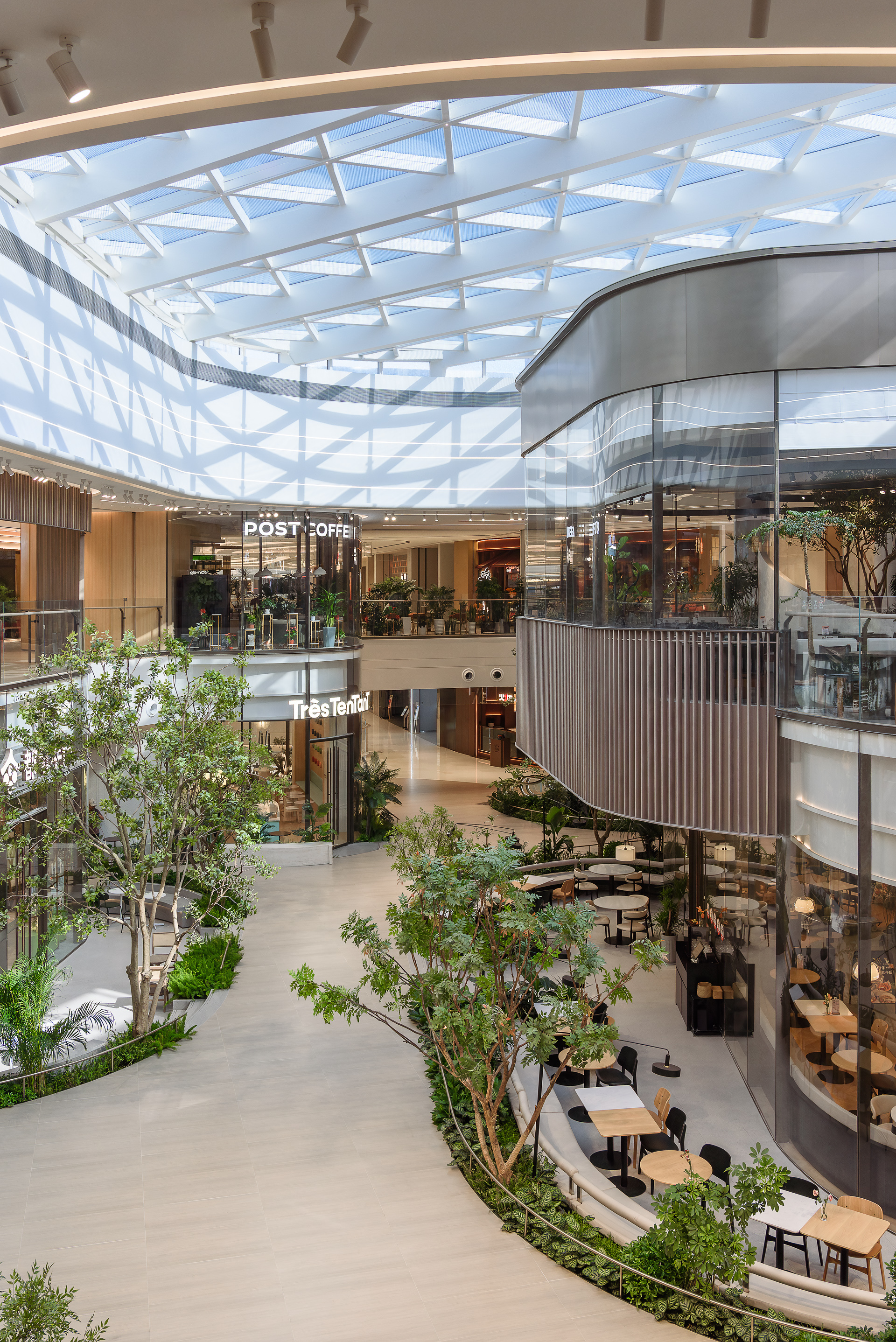 設計師巧妙植入綠色生態與休憩機能,創造出一處彷彿懸浮於空中的立體花園。不僅積極回應後疫情時代人們嚮往自然的心情,更試圖創新商業模式,將單純的購物行為昇華為生活風格的展演,讓高樓層成為吸引人流的磁石,而非商業死角。