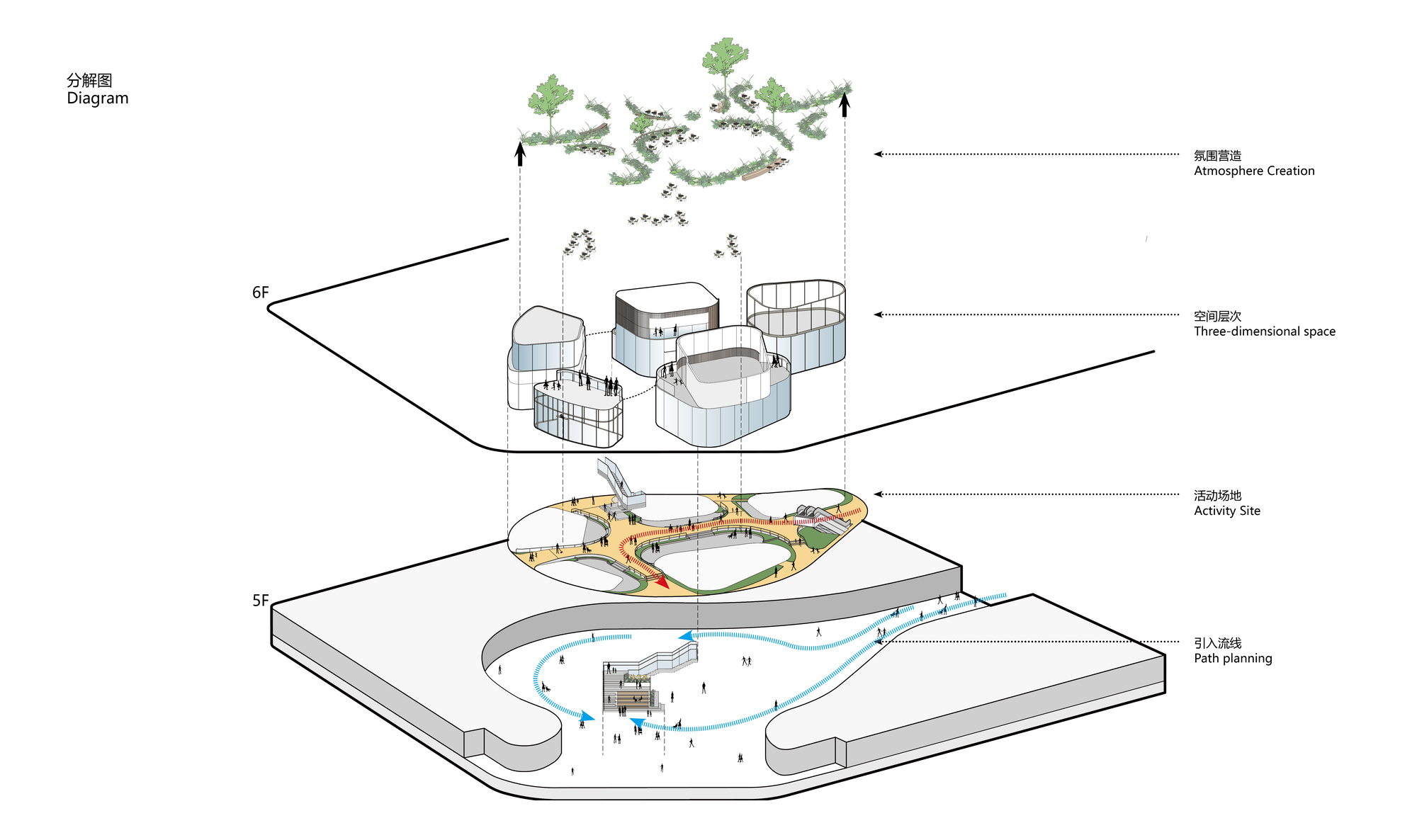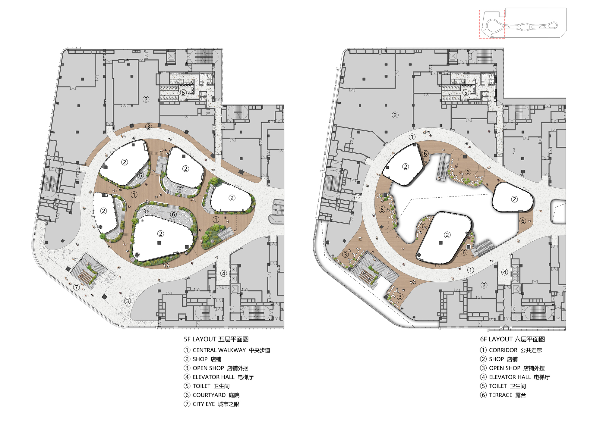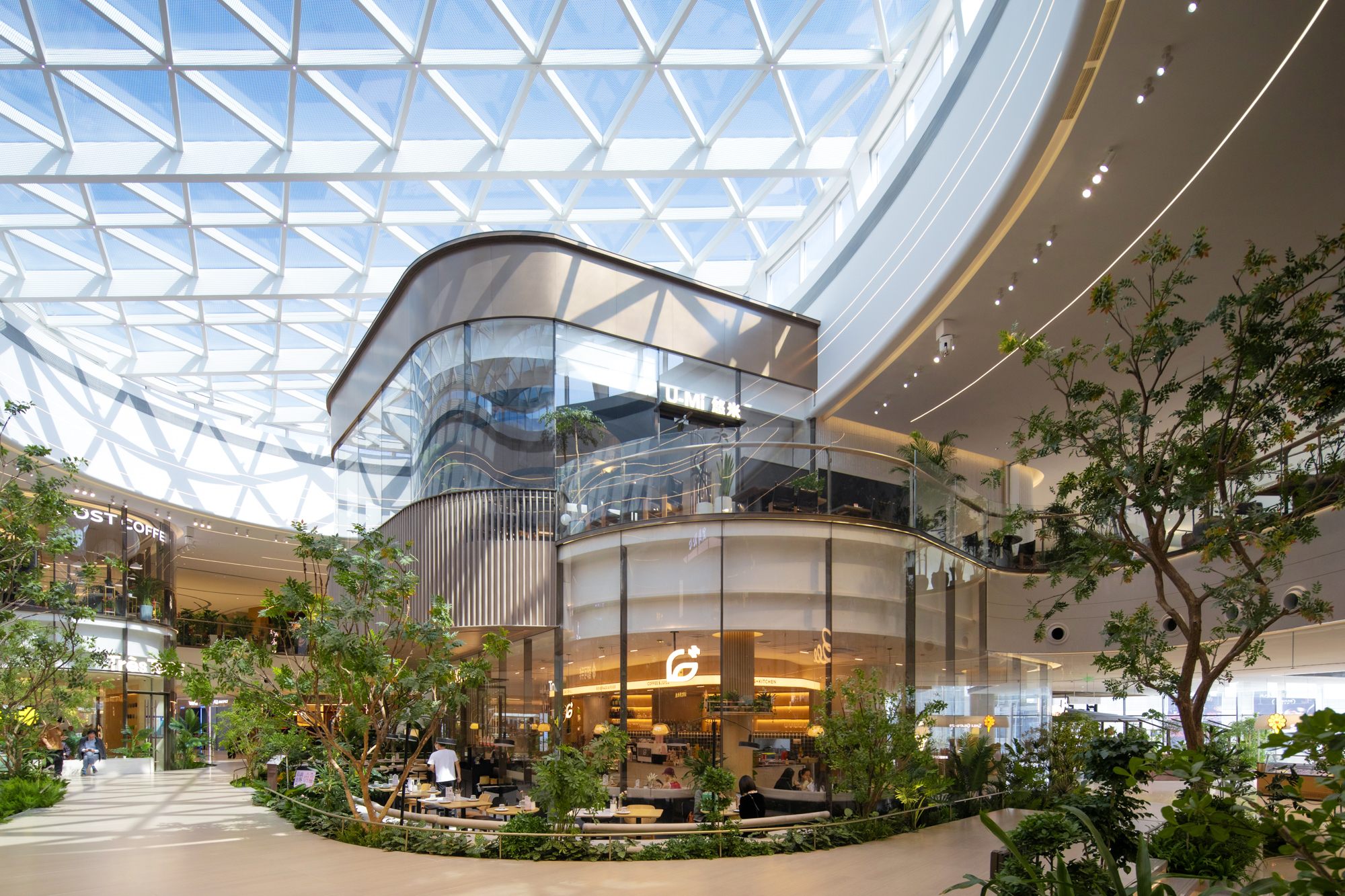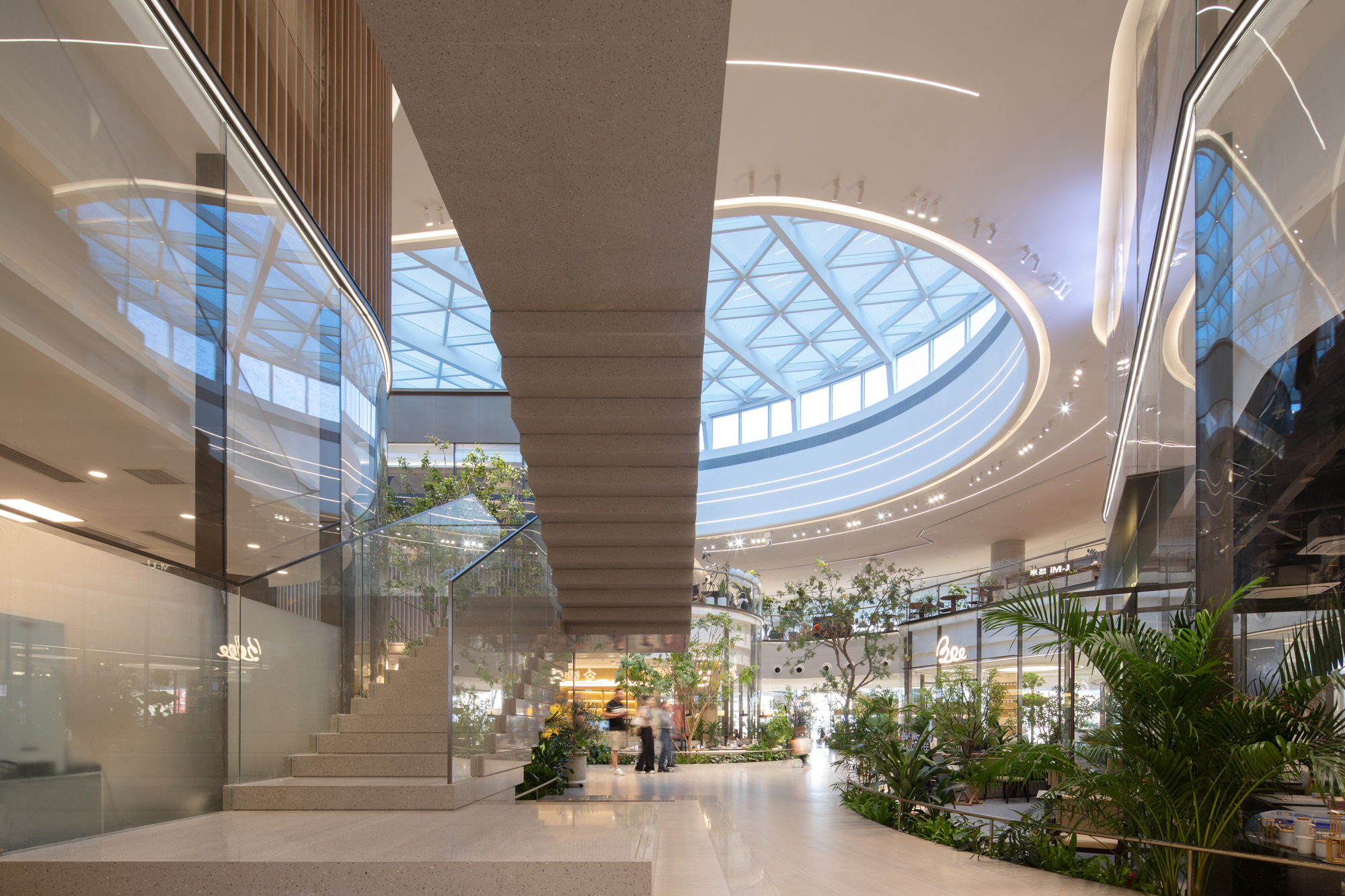 設計師巧妙植入綠色生態與休憩機能,創造出一處彷彿懸浮於空中的立體花園。不僅積極回應後疫情時代人們嚮往自然的心情,更試圖創新商業模式,將單純的購物行為昇華為生活風格的展演,讓高樓層成為吸引人流的磁石,而非商業死角。