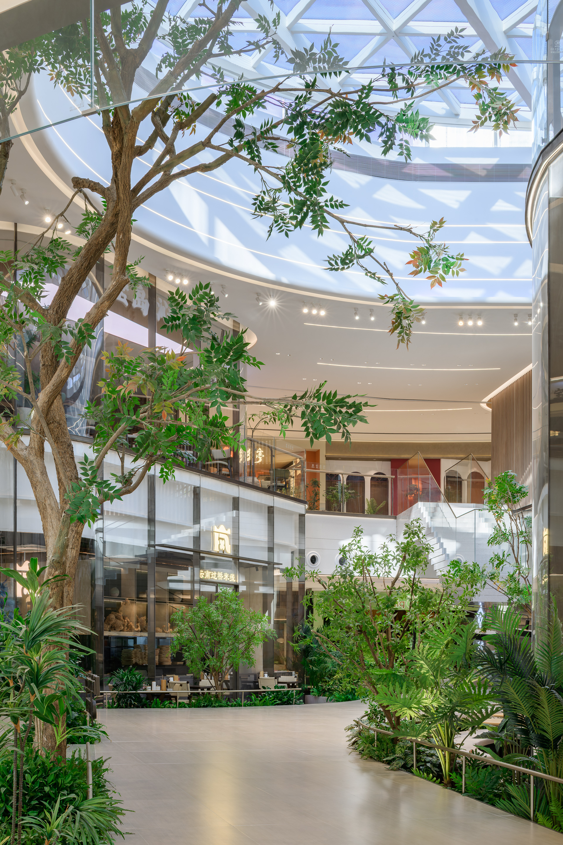 作為龍湖集團商業迭代的首個MEGA級體驗空間,相城天街在空間規劃上展現了大膽的企圖心。最引人注目的莫過於位於L5至L6高樓層的「沐光島」。這座佔地超過三千平方米的跨層式城市自然島嶼,打破了傳統商場高樓層人流難以到達的魔咒。