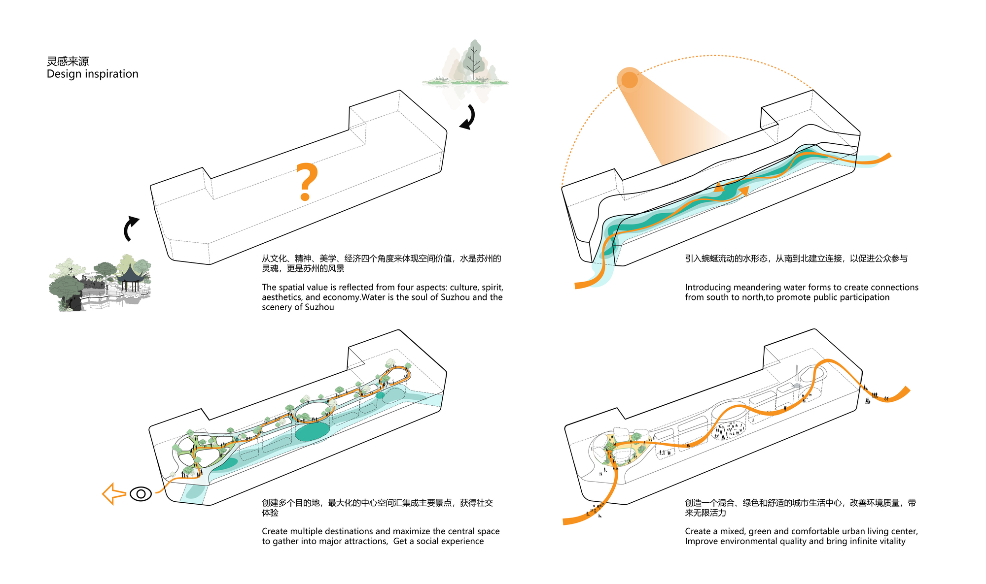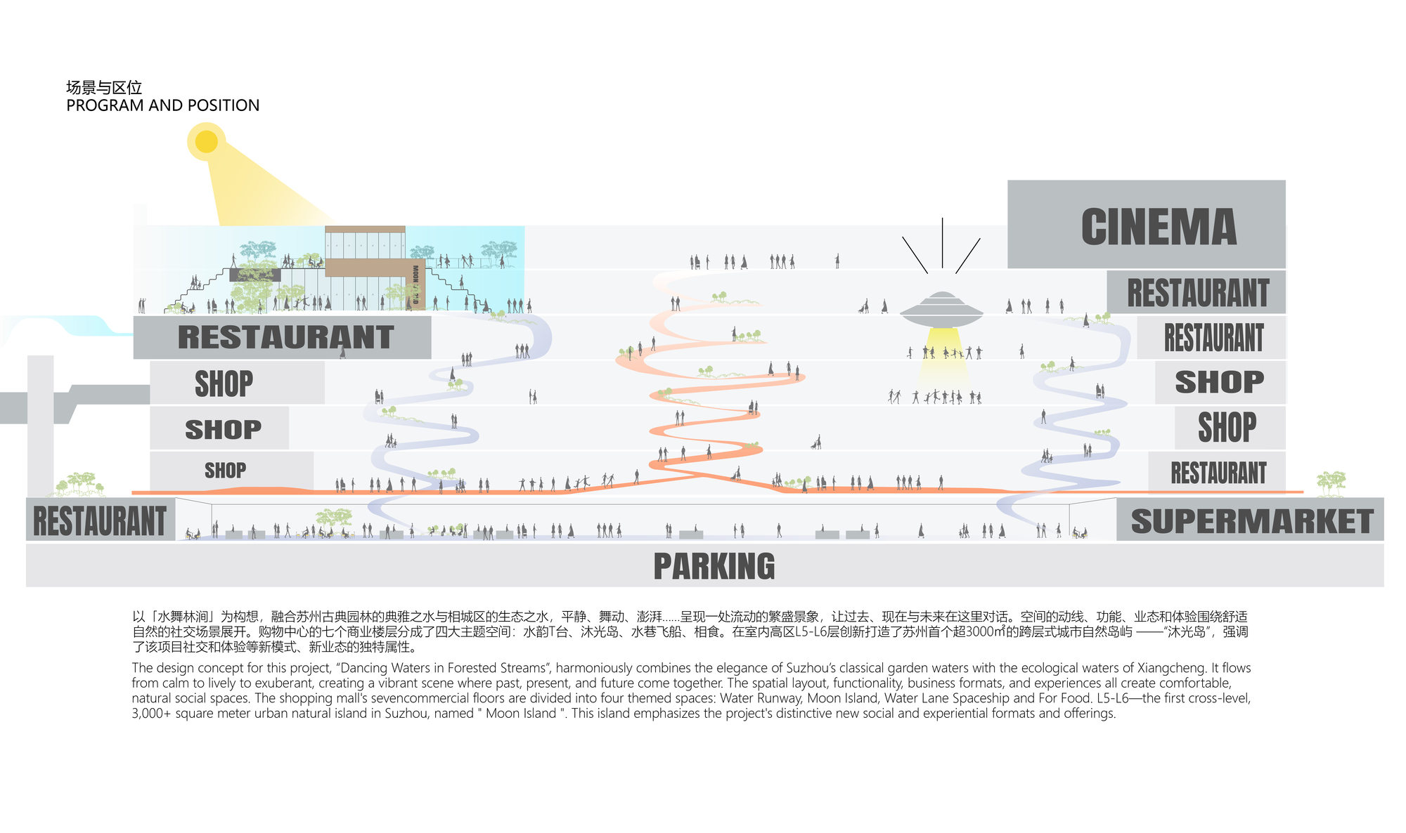 在蘇州這座擁有兩千五百年歷史的古典園林之城,打造一座現代化的時尚購物中心,無疑是一場古今對話的挑戰。主持建築師申俊偉提出了「水舞林澗」的設計概念,試圖捕捉江南水鄉的靈魂。