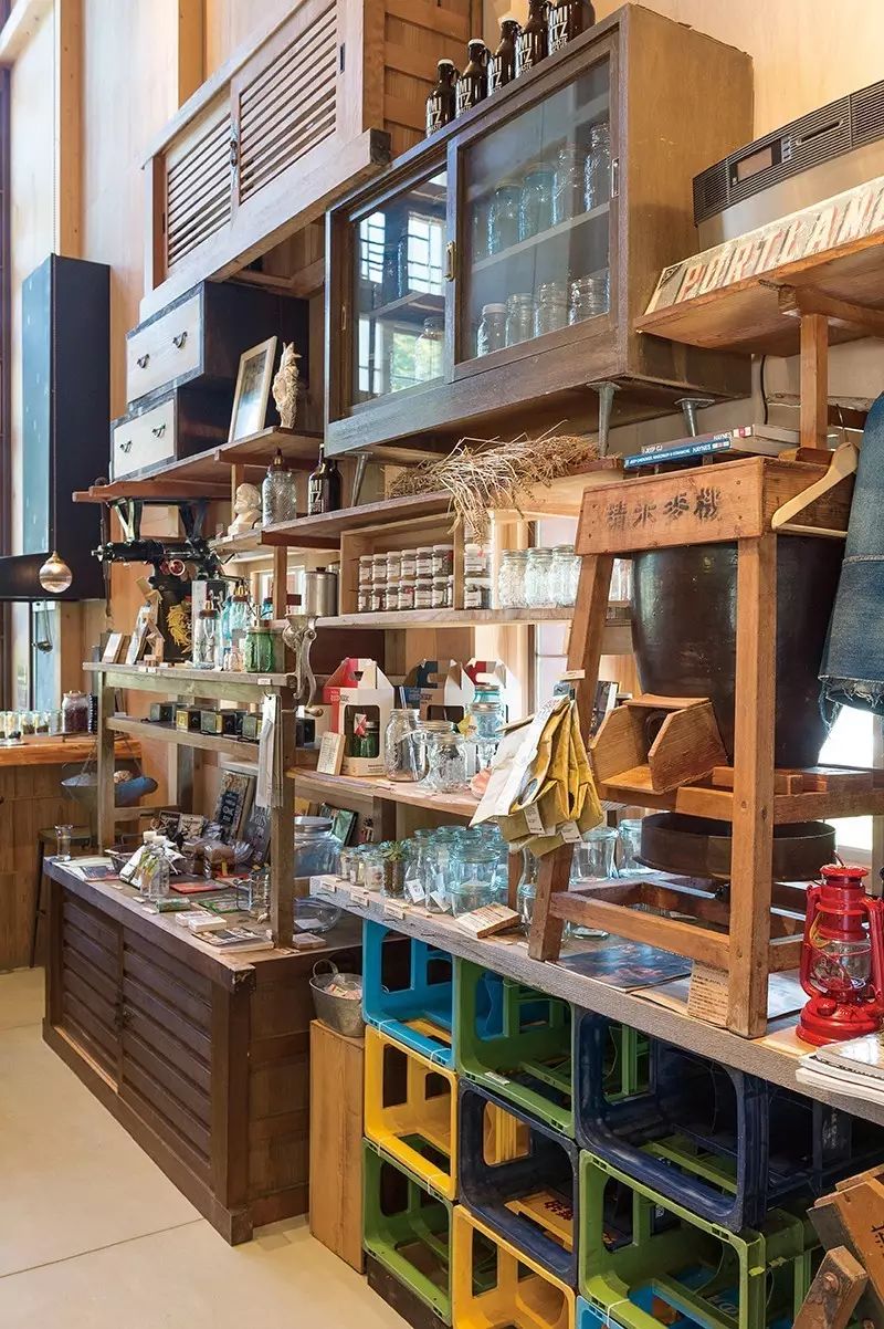 「Rise & Win」的建築風格也非常有特點,它出自建築家中村拓志先生的設計。繼承了上勝町的環保理念,外壁使用了當地特產的杉板作為板材,在柿漆中混入印度紅色,並進行「來自天然」的塗裝。內裝飾材料、架子、材料拼制而成的窗戶,幾乎都是循環利用了村裡廢棄的材料和建築工具,這裡簡直成了上勝町的廢品站。而其實,上勝町一個垃圾站都沒有,所有垃圾必須按照34種分類法進行丟棄。