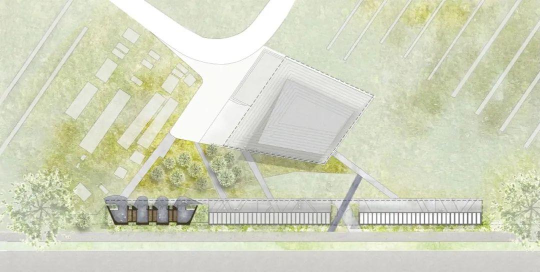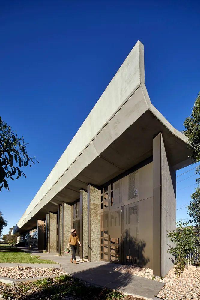 增建基於澳洲建築師Brearley Architects & Urbanists原有的設計語彙,將符號性和紀念性進行了延續,科比義式的預鑄混凝土屋頂形式則更進一步呈現,建築師適當地在新與舊之間保留停歇空間,作為標示。
