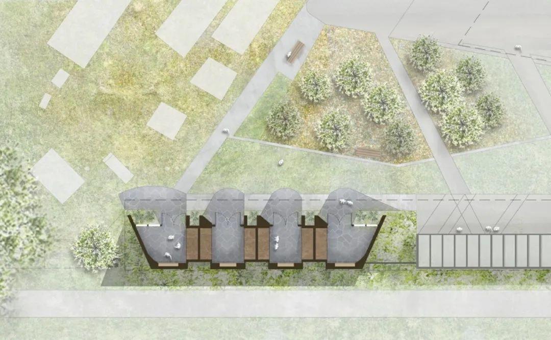 位於澳洲墨爾本西邊,車程約40分鐘的Werribee Mausoleum墓地進行增建計畫,從原有墓地空間基礎上增加170個位置。該計畫包含了兩個主體結構:位於原有基地東側包含140個朝外墓龕(以增加容量)的墓地花園,以及位於西側的單體,包含四個活動空間和教堂且能容納五到十個墓穴的家族墓群。