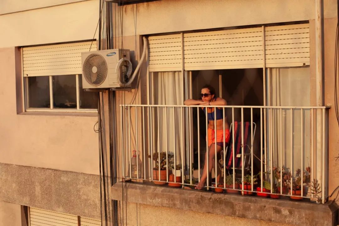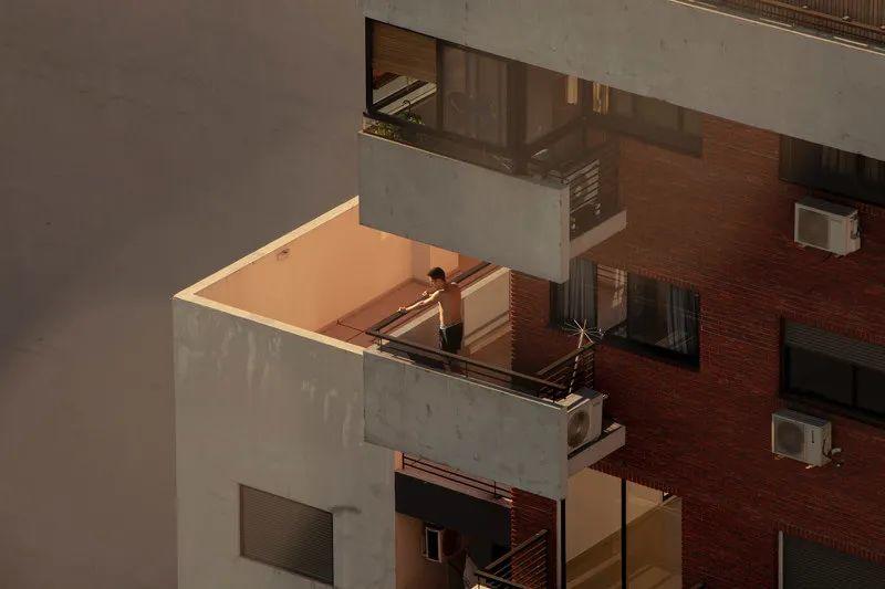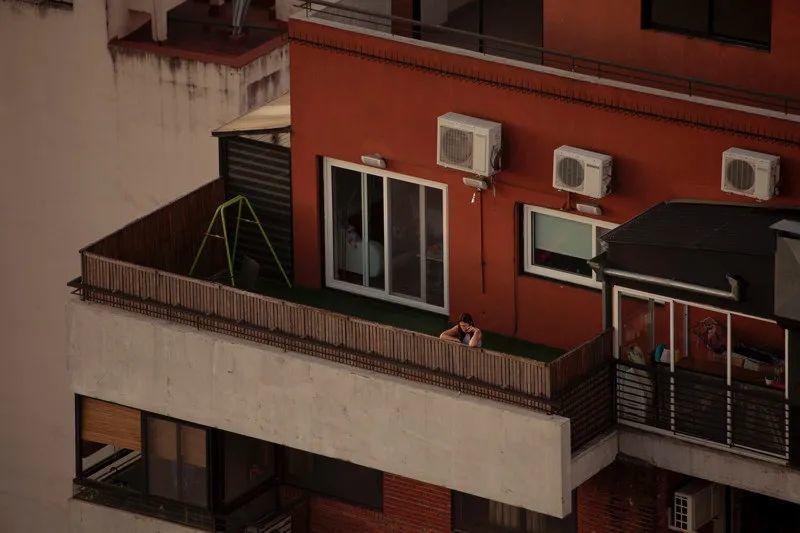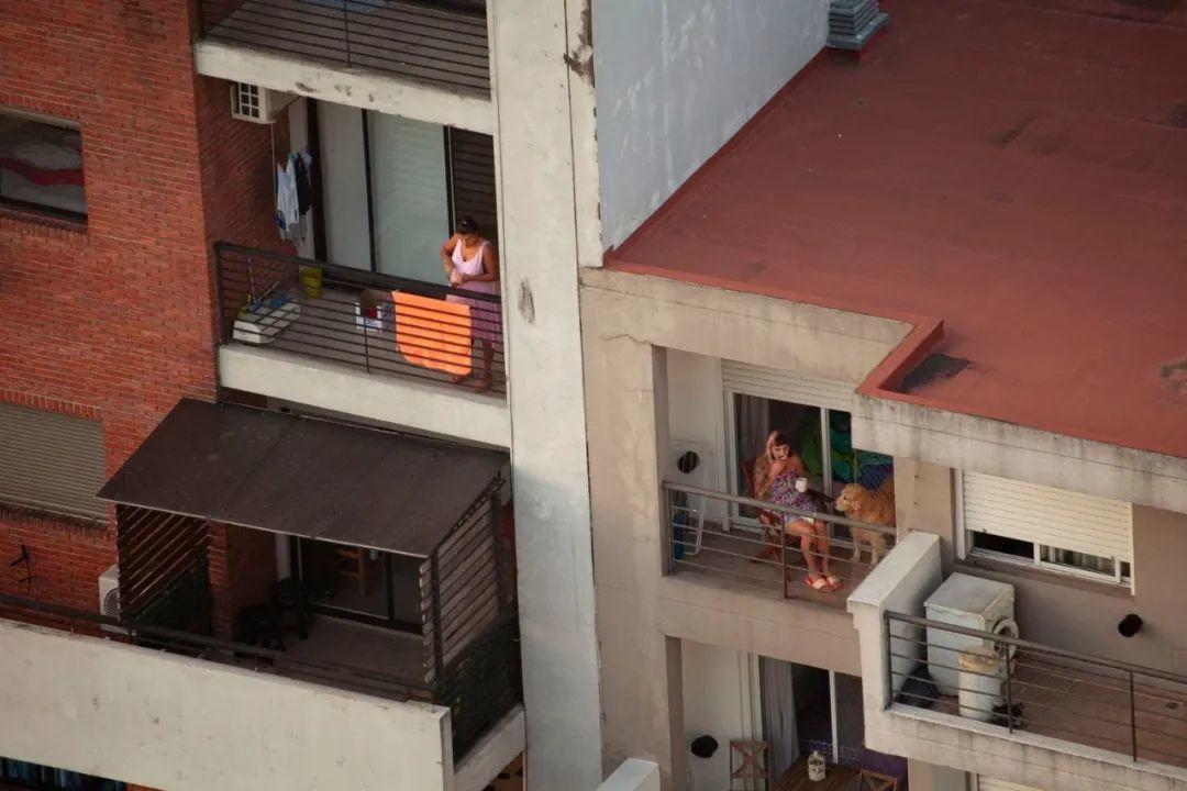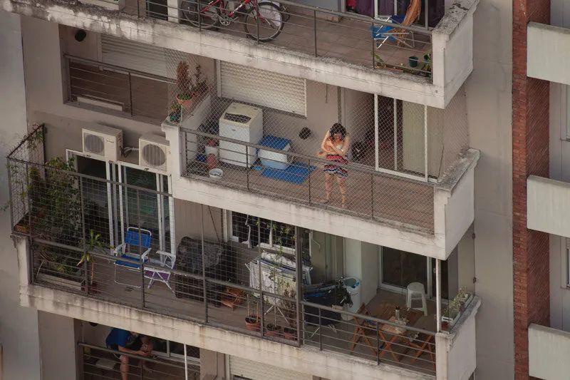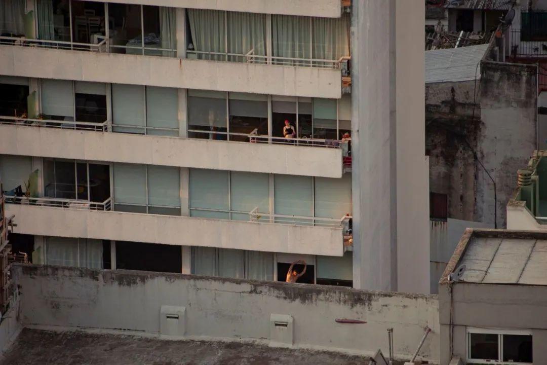 我住在布宜諾斯艾利斯一棟公寓的25層,房間不大,但三年前搬進來時我就愛上了這裡的風景,我每天會花很多時間看雲彩,從這裡看出去,四季的流逝都與在大街上所見不同。去去年因疫情阿根廷宣佈全國封城,我突然發現我有很多鄰居。這個季節夏天已經結束,但白天依然溫暖。我的鄰居們利用小小的陽台來逃避封閉的公寓,消磨時間。我每天觀察,也慢慢熟悉了他們的作息,給這些陌生人羅織上我想像的故事」,來自阿根廷女攝影師 Erica Canepa