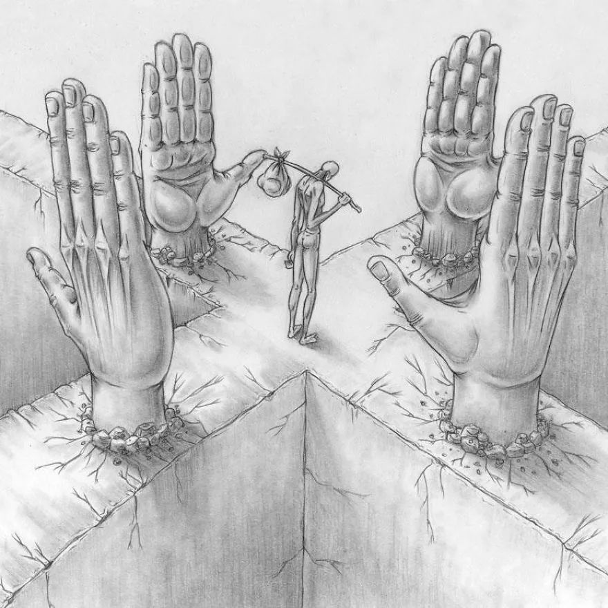 阿根廷插畫師 Al Margen 的畫作以諷刺荒誕的方式呈現當下的熱門話題,從網絡依賴、阿茲海默到孩子的學業壓力