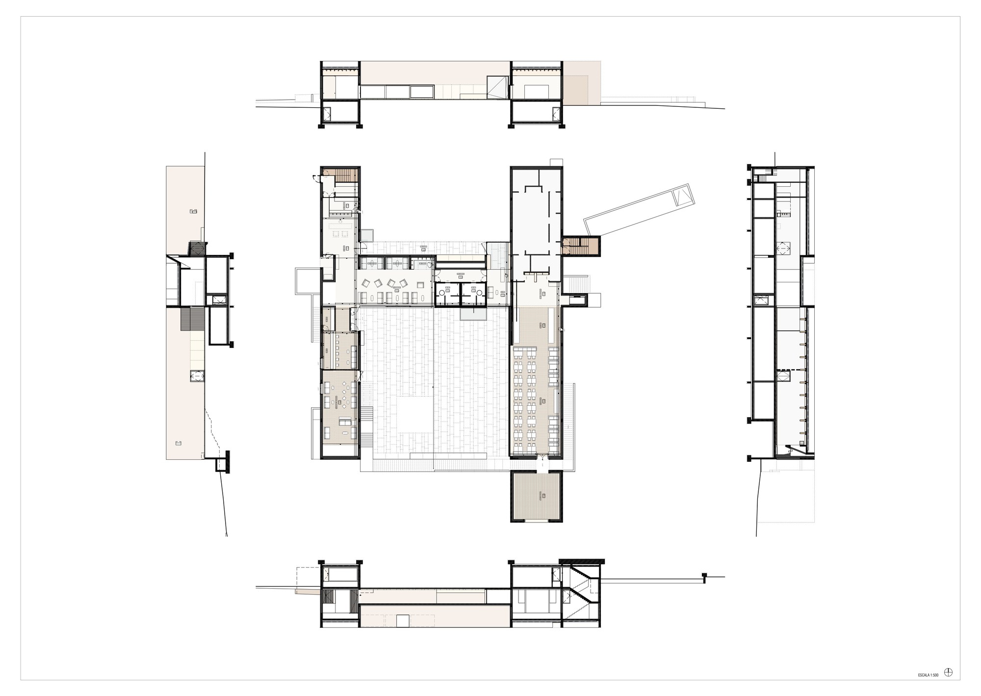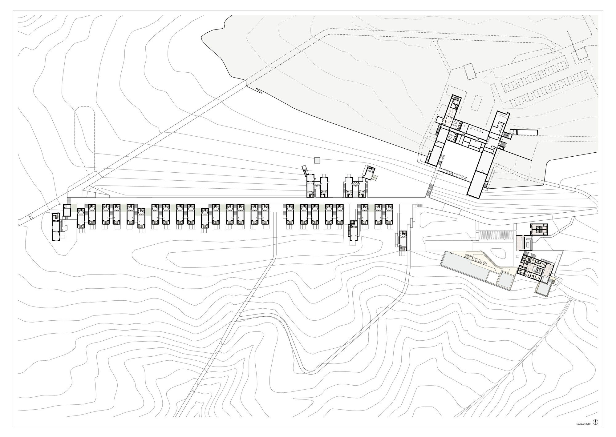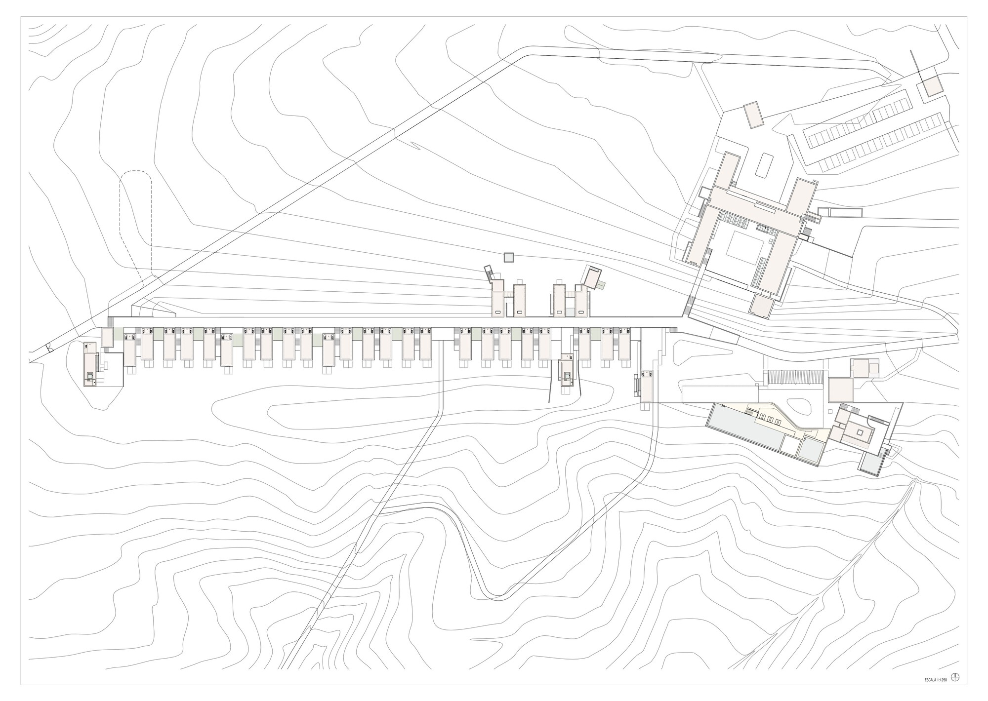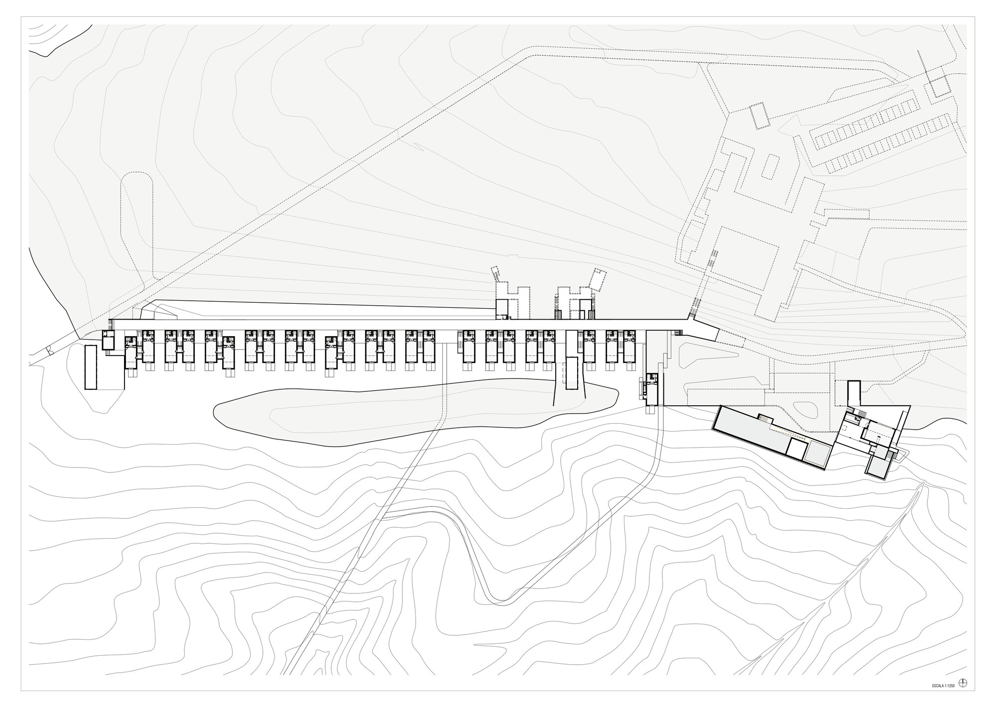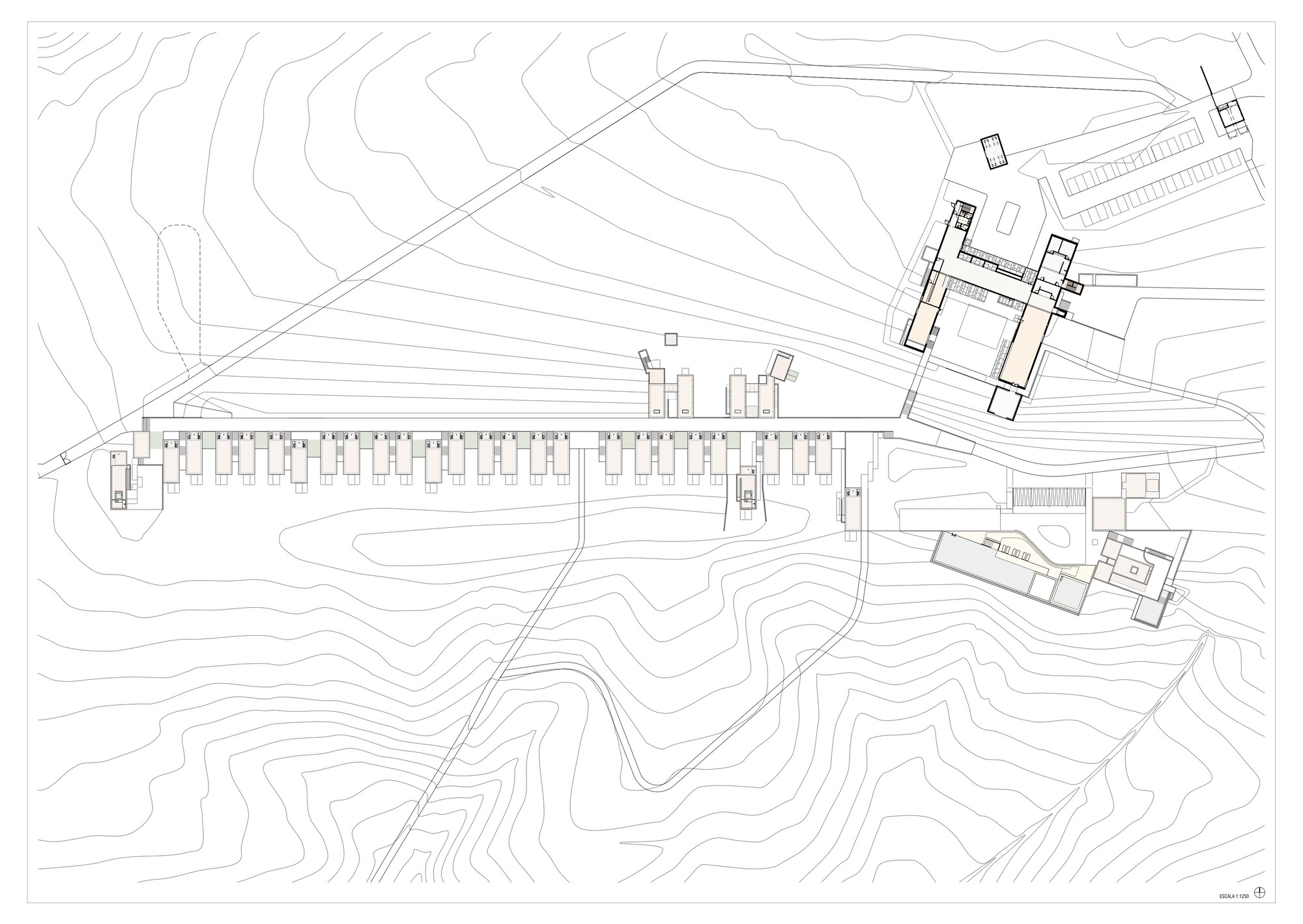 從尊重大地的前提衍生出了兩大設計主軸:「建築即地域」(building-territory)與「建築即路徑」(architecture-route)。傳統酒店那種封閉式的大型量體徹底消失,取而代之的是將整片地域視為酒店的軀體。
