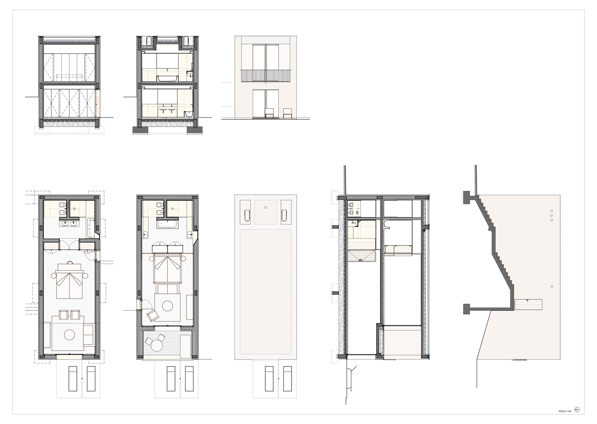 最終,這片總樓地板面積3316平方公尺的聚落,於2023年完工,創造出了一個與海、平原及天空無縫接軌的整合空間。建築的形式在此展現了雙重閱讀性:它既像是荒野中孤獨矗立的禮拜堂(chapel),具有某種精神性的象徵意義;又像是圍繞著這些節點所展開的結構系統。這種特質並非一眼就能看穿,因為它是透過「虛空(emptiness)」來進行構築。正如老子所言:「鑿戶牖以為室,當其無,有室之用。」Atelier Bugio創造的是一種感官建築(sensory architecture),摒棄了所有的人工矯飾與多餘元素,只留下最純粹的居住本質。來自四面八方的自然光線成為了最佳的建材,隨著時間推移在白牆上刻畫出時間的軌跡,讓居住者在光影變幻中,照見內心的平靜與大地的永恆。