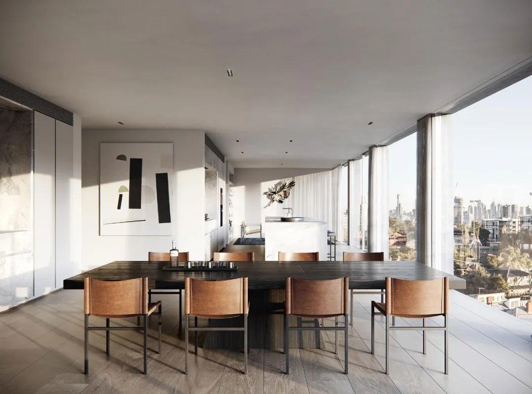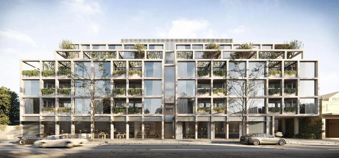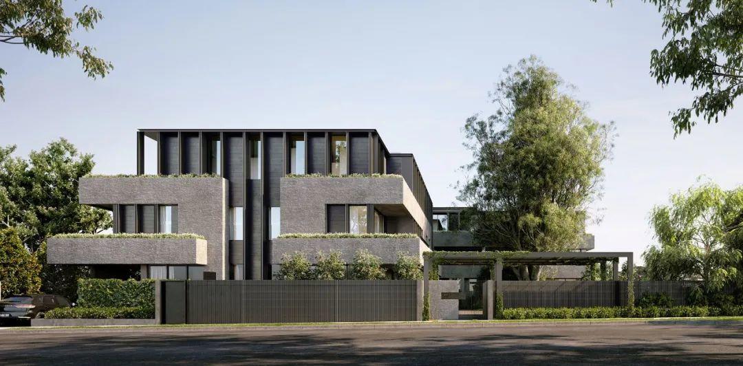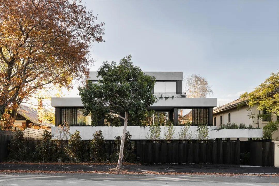 在墨爾本的Toorak郊區,Carter有一個小型的多住宅作品,包括八套公寓——每一套公寓的大小都非常適合舒適的生活。從街道上看,Carter Toorak與周圍郊區的尺度和諧地融合在一起,而強烈的線性帶狀混凝土立面提供了建築的秩序並確定了基調,綠色植栽被融合在一起,並中和了混凝土的粗獷。Carter Toorak作品的規模和比例是確保該作品舒適地座落在現有城市結構中的關鍵考慮因素。