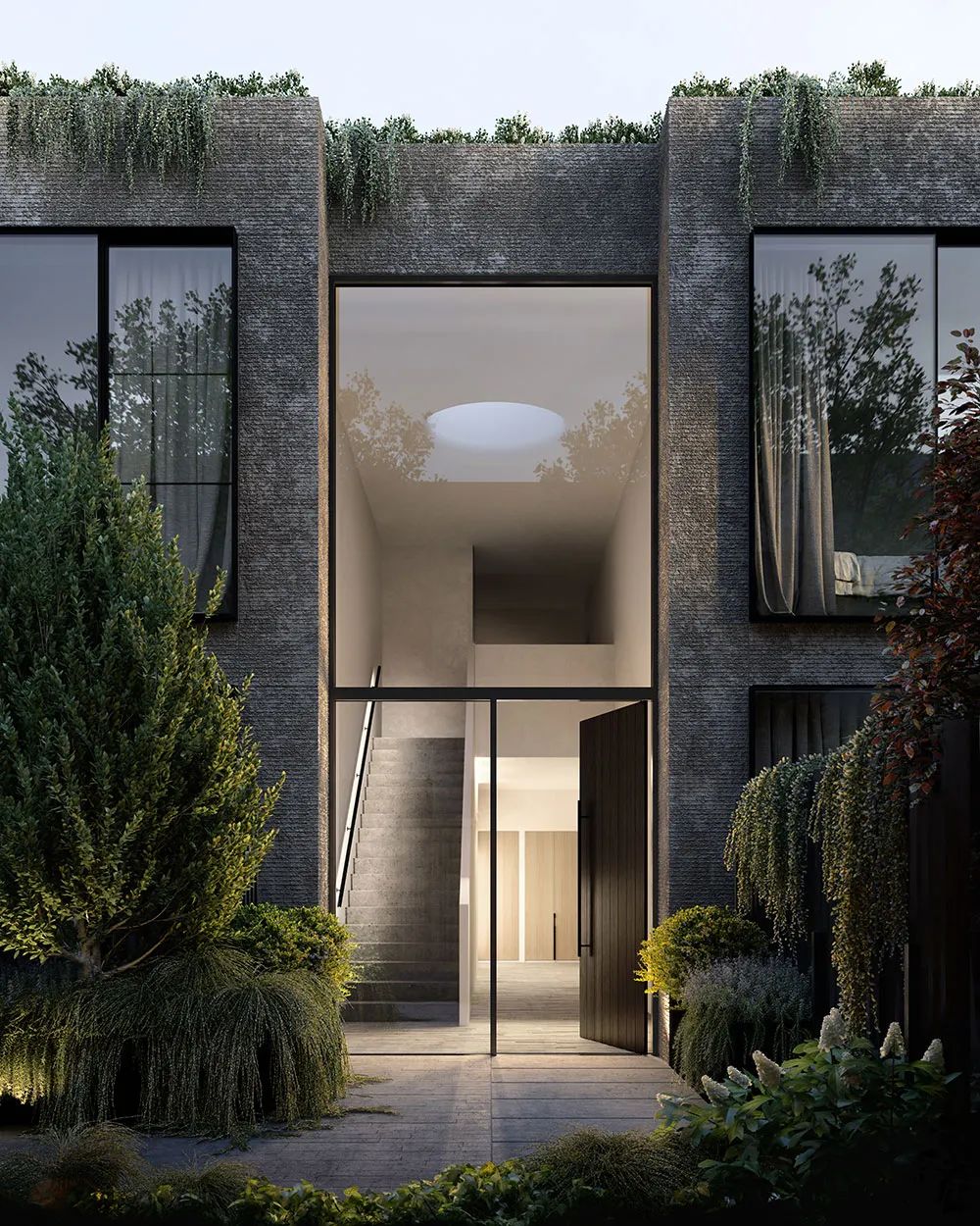 Victoria&Burke座落在墨爾本坎伯韋爾(Camberwell)的路口,維多利亞與伯克(Victoria & Burke)帶來了一種強烈的紀念形式,並且應為綠色植栽而變得柔和,圍繞著一棵歷史悠久的大樹。基地圍繞著這棵大樹,這創造了一個很好的機會來獲得水平的建築形式。這也意味著有很大比例的花園面積,這是非常罕見的,為建築提供了完全獨特的性格。 混合水平和垂直形式和物質的概念回到了周圍的城市環境中,借鑑了維多利亞街沿街的宏偉的維多利亞住宅,以及坎伯韋爾區更廣闊的中世紀住宅。現有的背景也呈現在材料上,粗糙的灰泥也參考了維多利亞時代的調色板和更常見的20世紀30年代的平房。