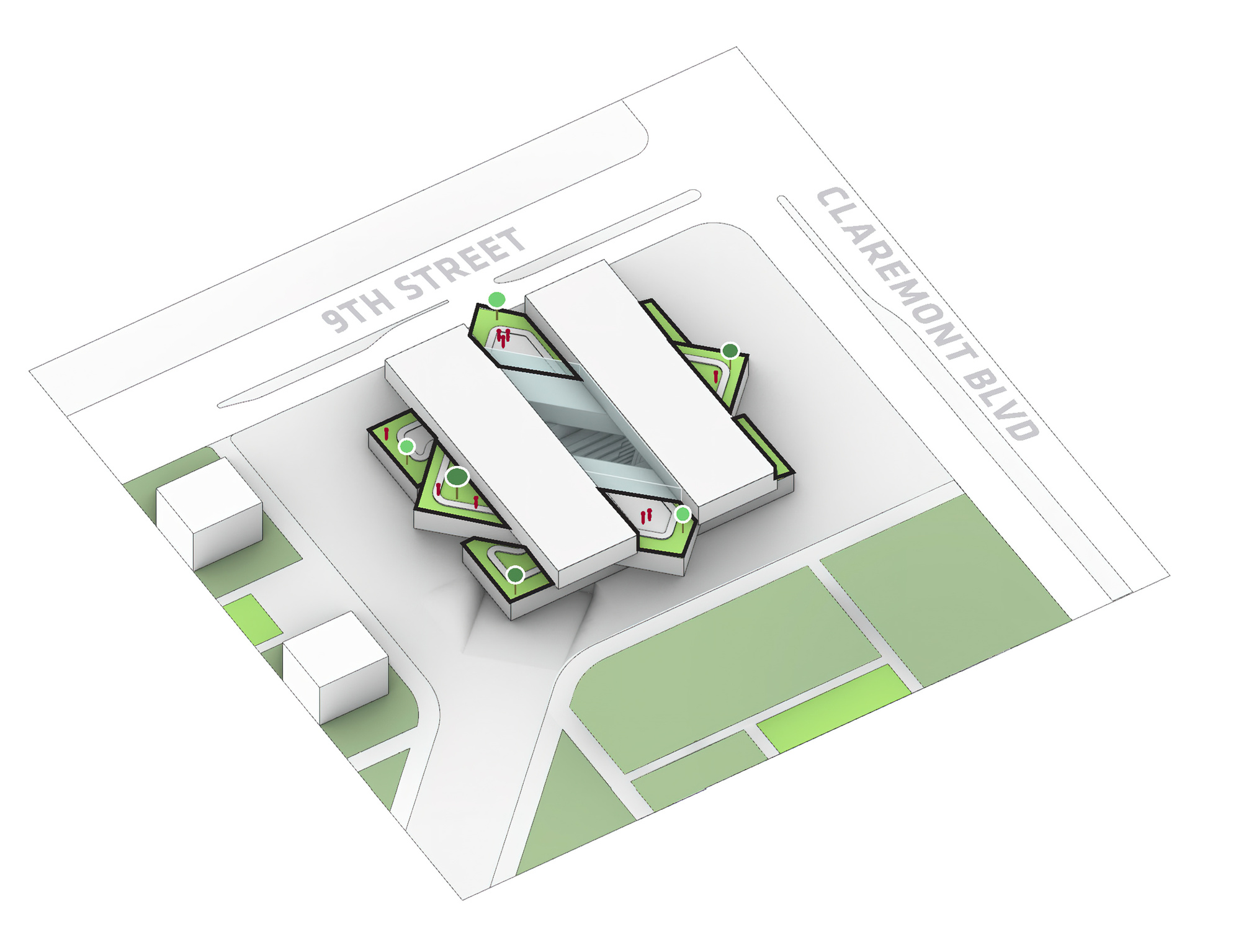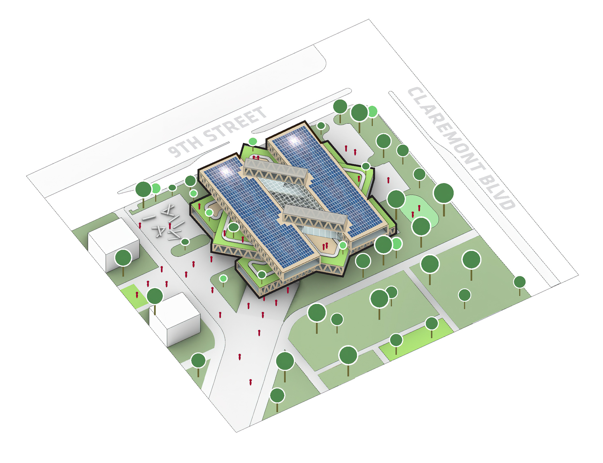 BIG的創辦人兼創意總監 Bjarke Ingels 解釋道,新的科學中心將電腦科學、數據科學與生命科學等前沿學科,整合於同一個環境之中。作為其總體規劃中首棟完工的建築,它將校園原有的北大街(north mall),延伸為一條Z字形的廊道系統,成為整個校園人流的分配樞紐。設計團隊將科學中心想像為一系列並置的平行量體,中間夾著一個公共空間,再將整體朝著與主廊道相同的方向進行旋轉,從而創造出動線與視覺的連續性。